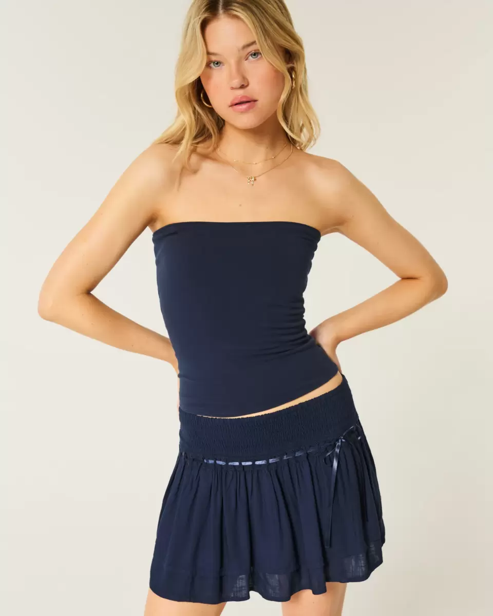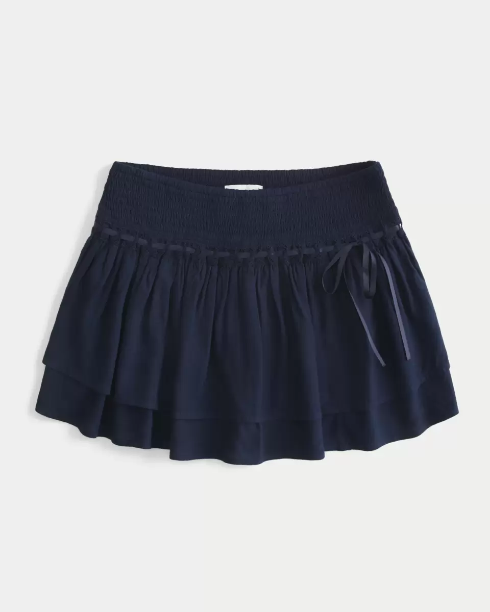 Une mini-jupe élégante et ultra douce, dotée d’une taille mi-haute et de volants superposés. Taille smockée douce avec de jolis détails en dentelle et short en maille dissimulé. Importé.