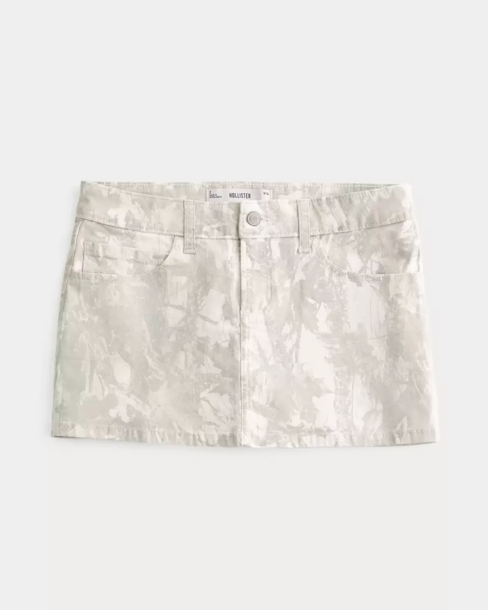 Une jolie mini-jupe en sergé avec un motif camouflage intégral et une taille basse. Importé.