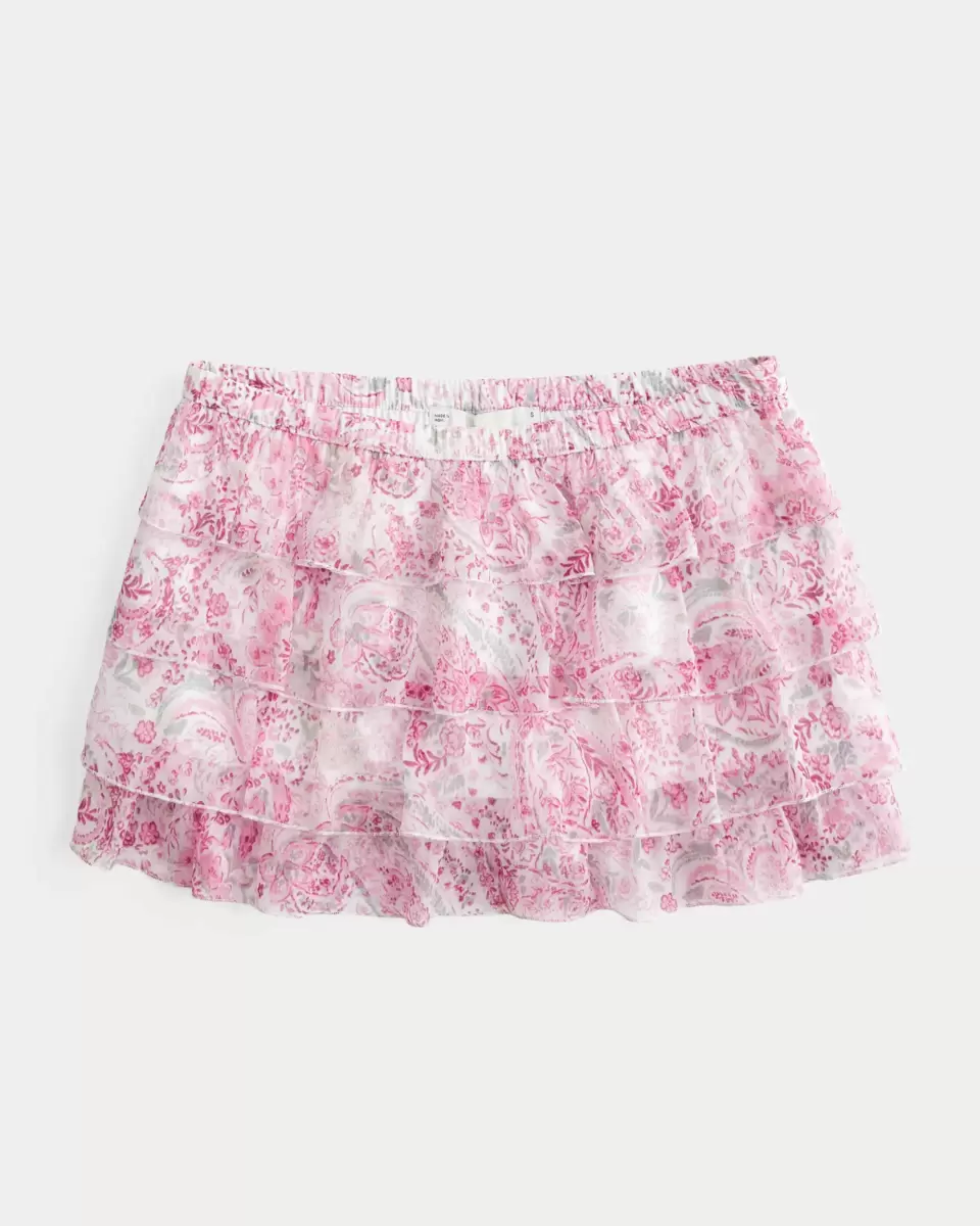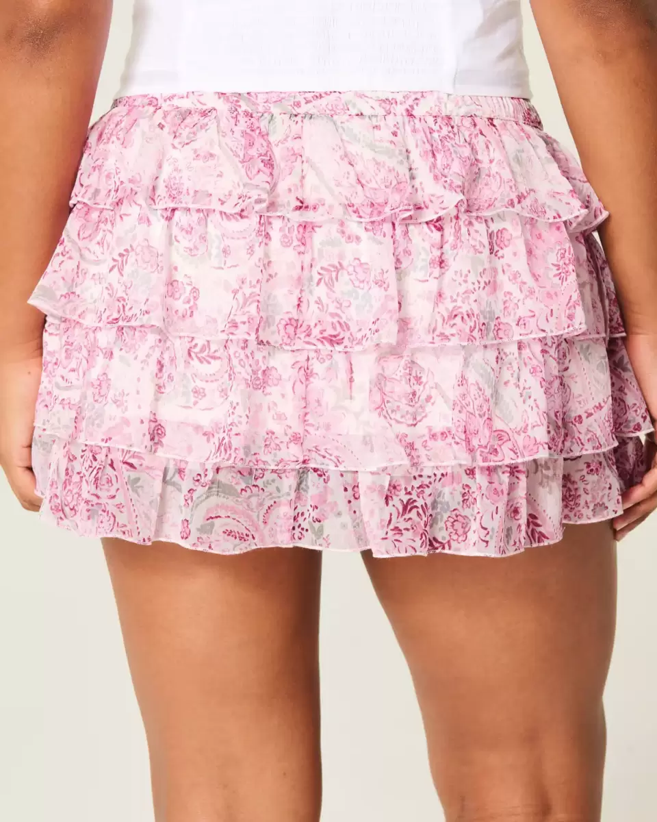 Une jolie mini-jupe ultra douce avec une taille basse et des volants superposés. Short en tricot intégré, poches. Importé.