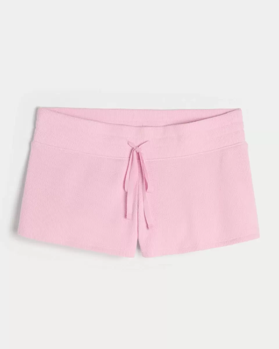 Mini-short mignon et confortable en tissu gaufré ultra doux. Cordon de serrage à la taille. Importé.