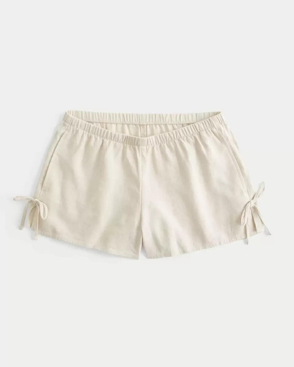 Votre nouveau short préféré est doux et confortable, avec de jolis nœuds sur les côtés. Taille basse cintrée, tissu doux en lin mélangé, poches. Importé.