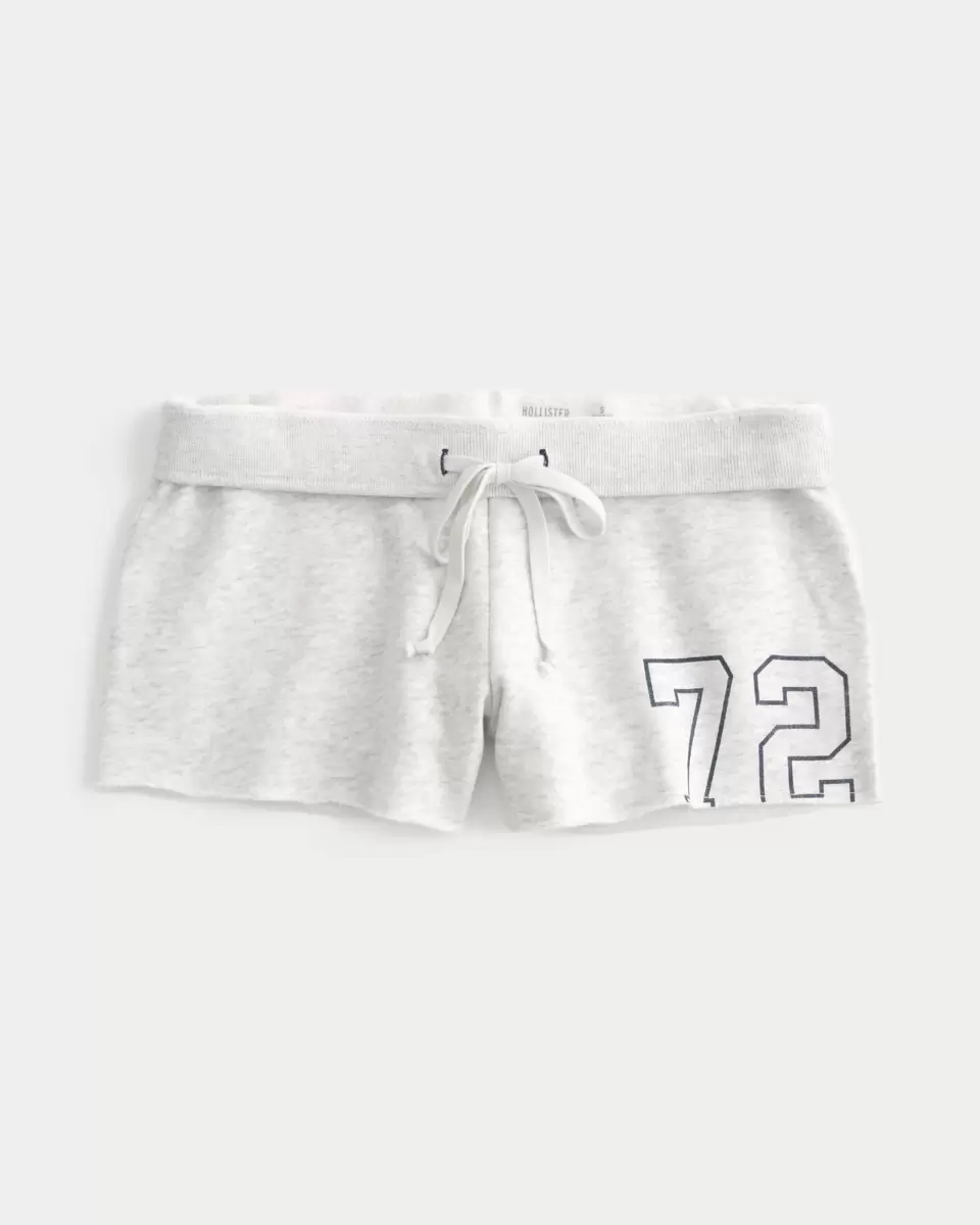 Mini short en polaire ultra doux avec imprimé sportif à chiffres. Cordon de serrage à la taille. Importé.
