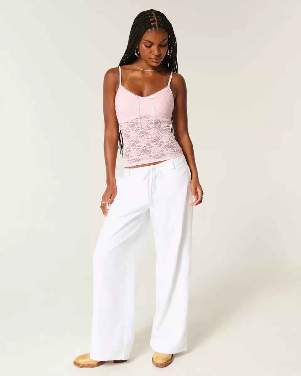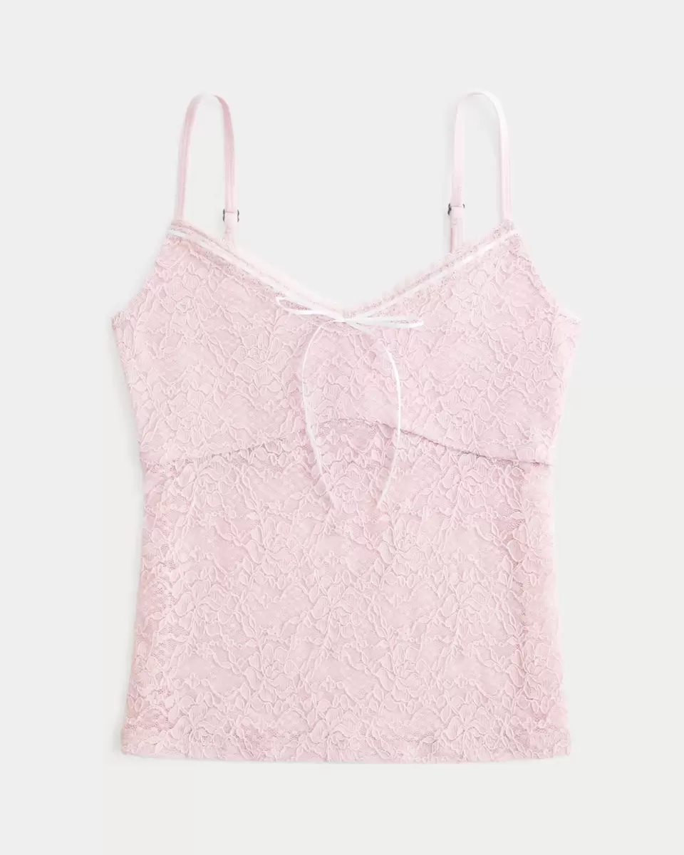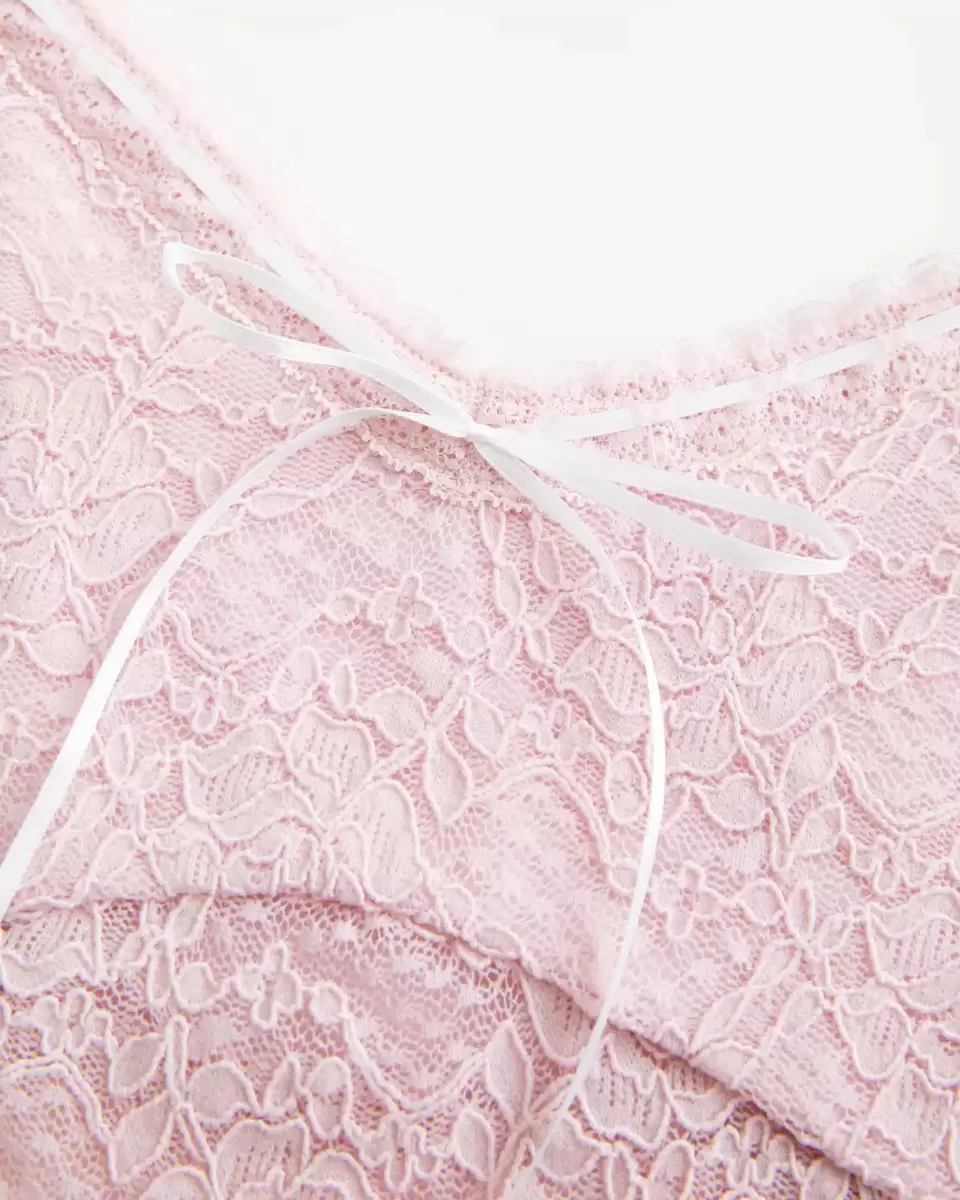 Un joli caraco en dentelle ultra douce, avec une bordure festonnée à l’encolure et un joli nœud. Doublure à la poitrine, bretelles réglables et décolleté en V. Coupe ajustée. Importé.