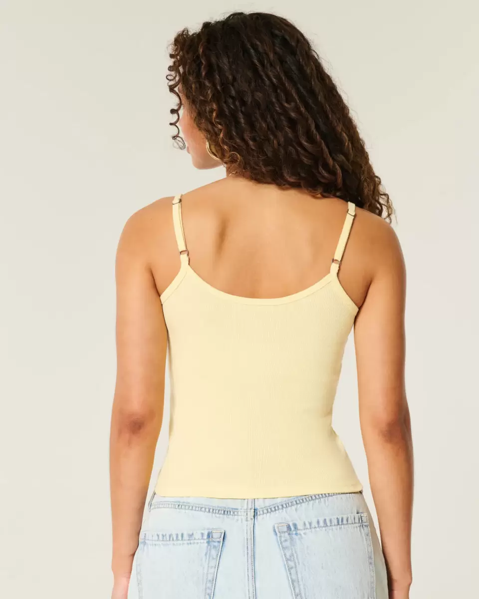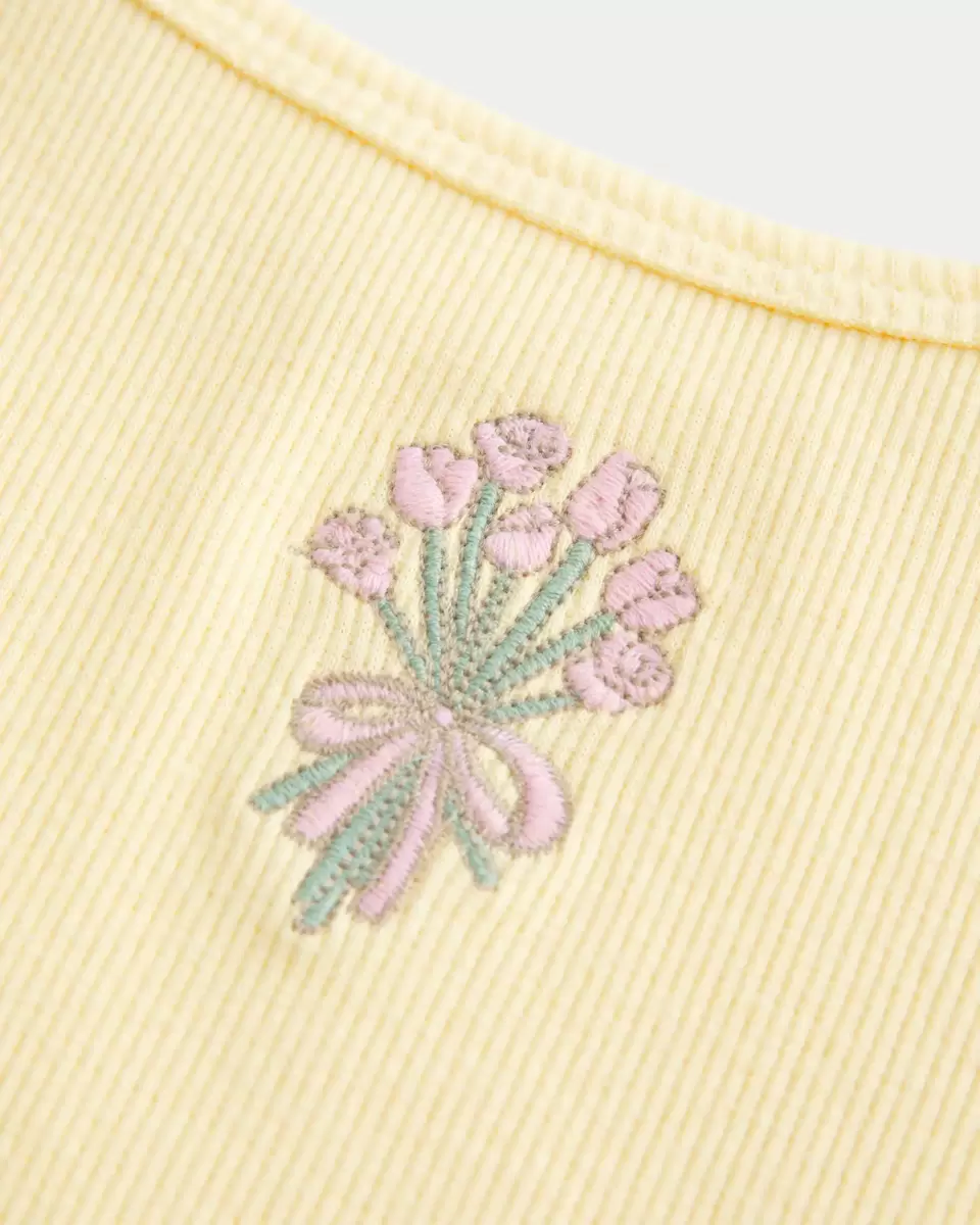 Ce joli débardeur est confectionné en tissu côtelé doux et présente une broderie florale. Bretelles réglables. Coupe ajustée. Importé.