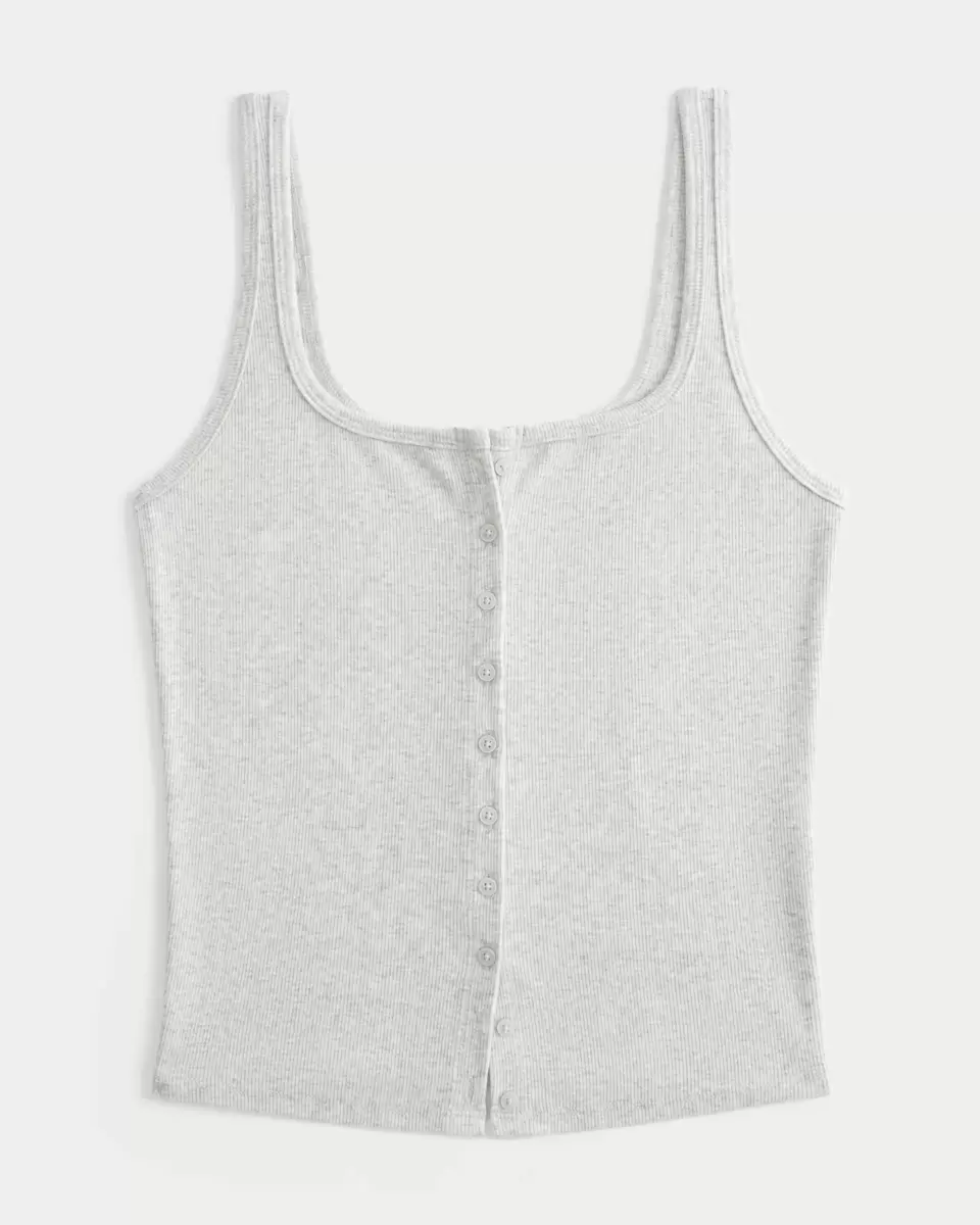 Débardeur ultra doux et confortable en tissu côtelé, doté d’une fermeture boutonnée. Coupe ajustée. Importé.