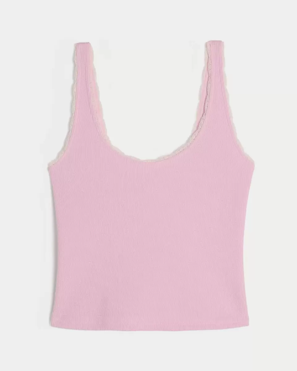 Un débardeur mignon et confortable en tissu gaufré ultra doux, avec une jolie bordure en dentelle. Importé.