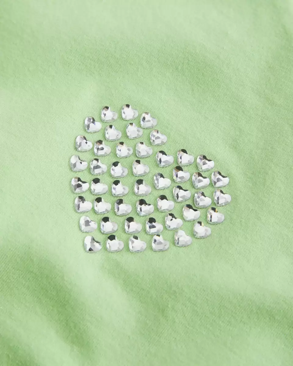 Débardeur ultra doux à une épaule dénudée et orné d’un cœur scintillant Pride. Coupe ajustée. Importé.