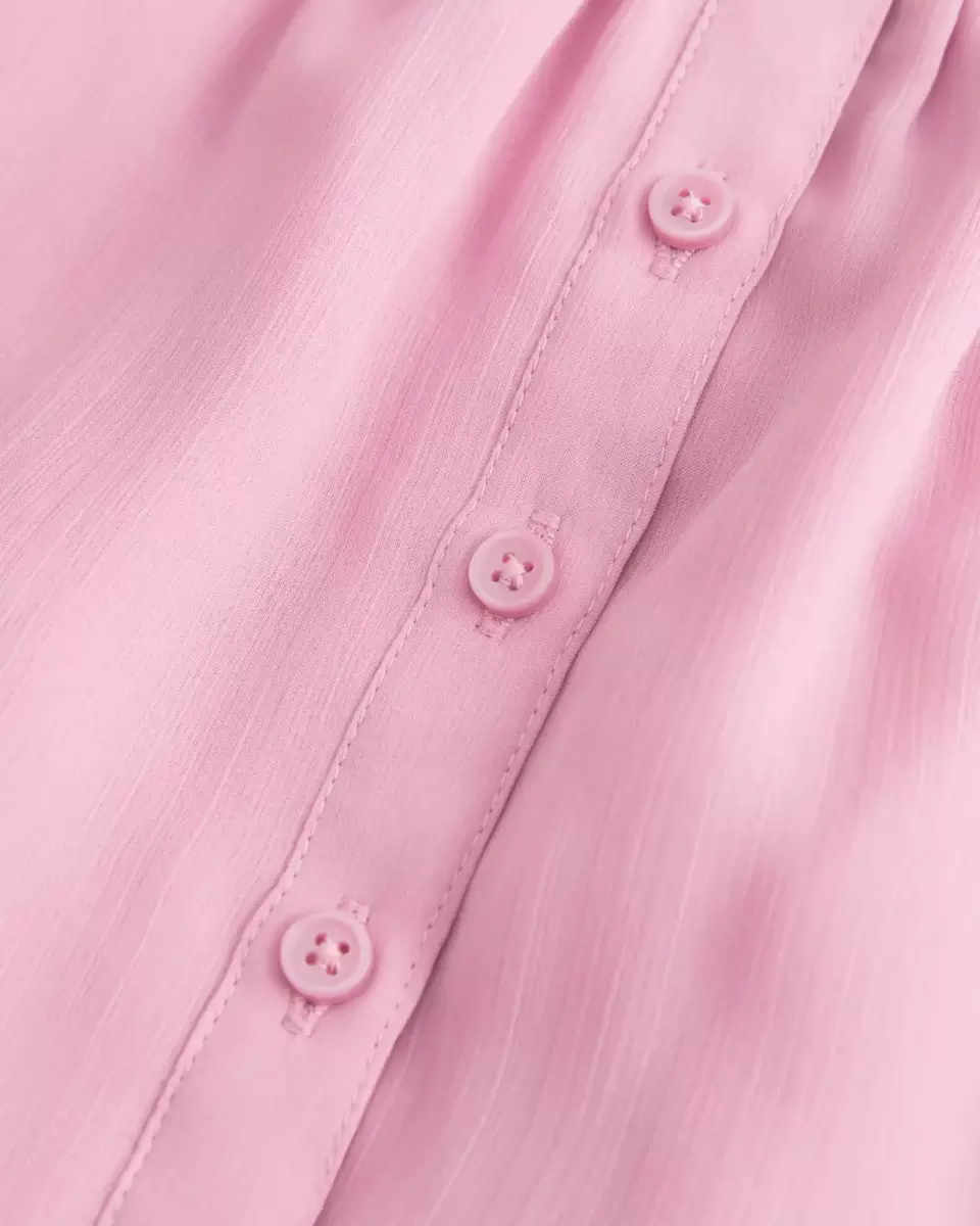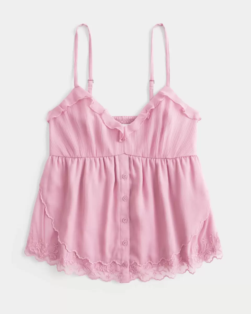 Confectionné en mousseline froissée ultra douce et fluide, ce haut babydoll est orné de volants et d’un ourlet à volants brodé. Il est boutonné et doté d’un dos à smocks doux. Il est superbe, aussi bien habillé qu’en tenue décontractée ! Importé.