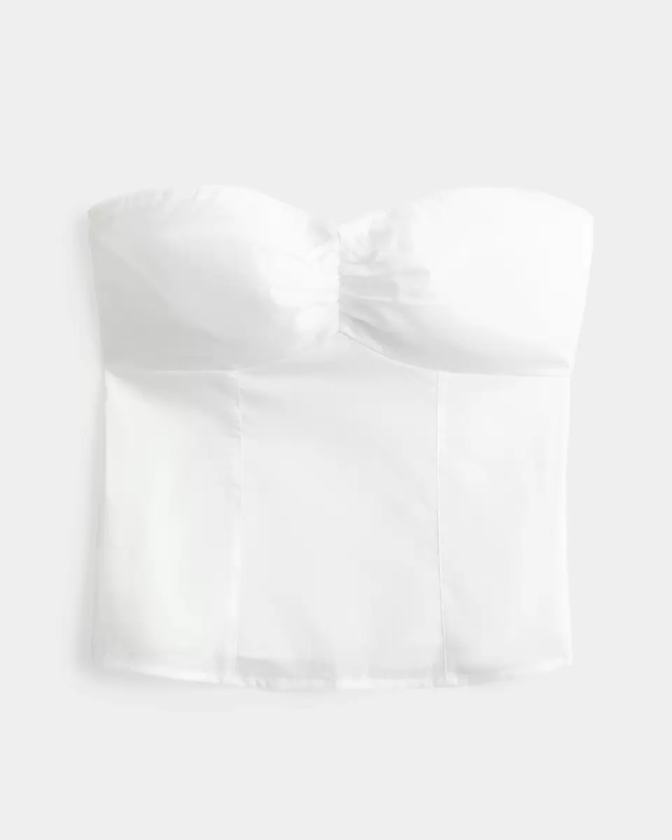 Un joli haut doux avec des détails cintrés à la poitrine, un nœud au centre de l’encolure et une jolie bordure en dentelle picot. Sans bretelles. Coupe ajustée. Importé.