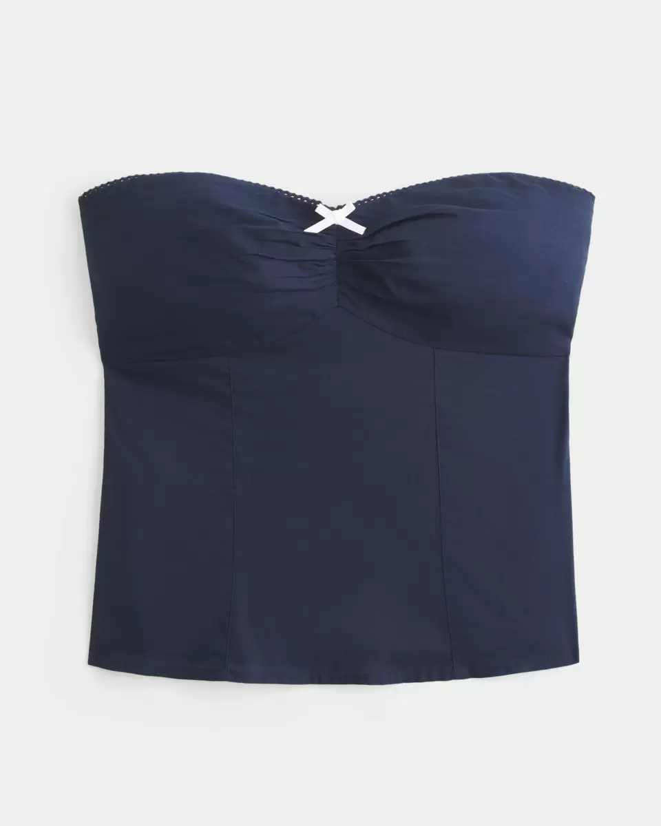 Un joli haut doux avec des détails cintrés à la poitrine et un nœud au centre de l’encolure, ainsi qu’une jolie bordure en dentelle picot le long de l’encolure. Sans bretelles. Coupe ajustée. Importé.