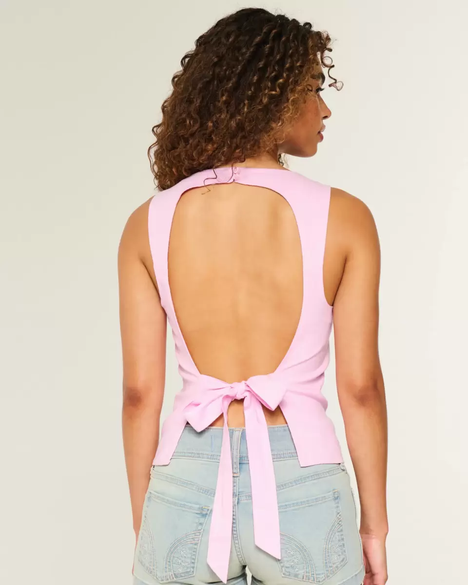 Un haut super mignon en mélange de lin doux, avec un dos ouvert et une encolure haute. Fermeture à nouer au dos, détails de couture. Coupe ajustée. Importé.