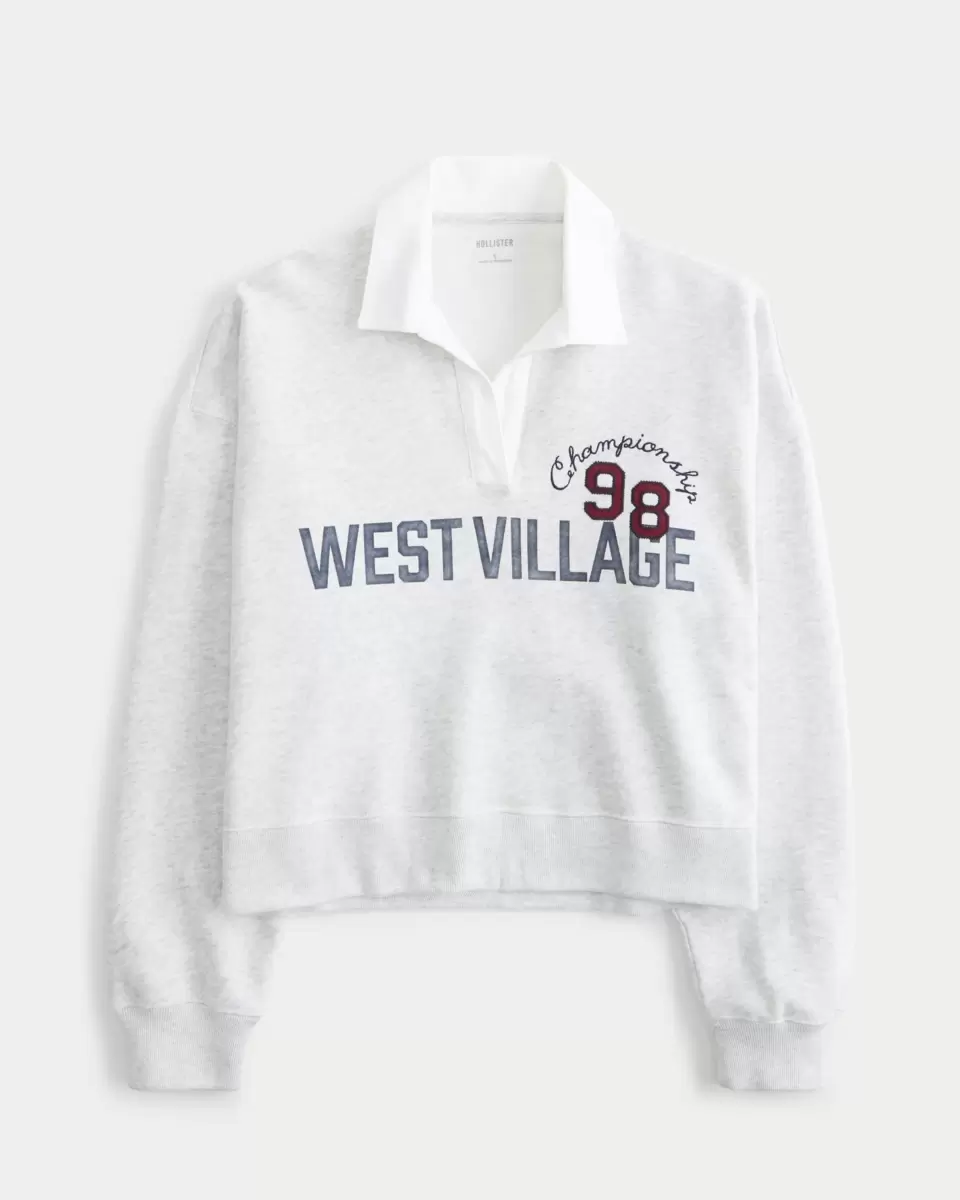 Ce polo de rugby en polaire confortable et ultra-doux est orné de motifs, d’appliqués et de broderies West Village New York. Patte de boutonnage, col et manches longues sans boutons. Coupe facile. Importé.
