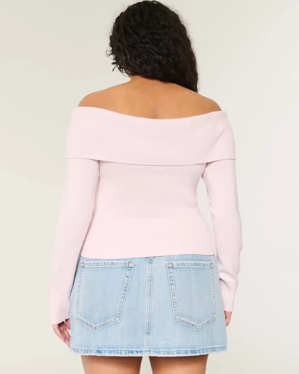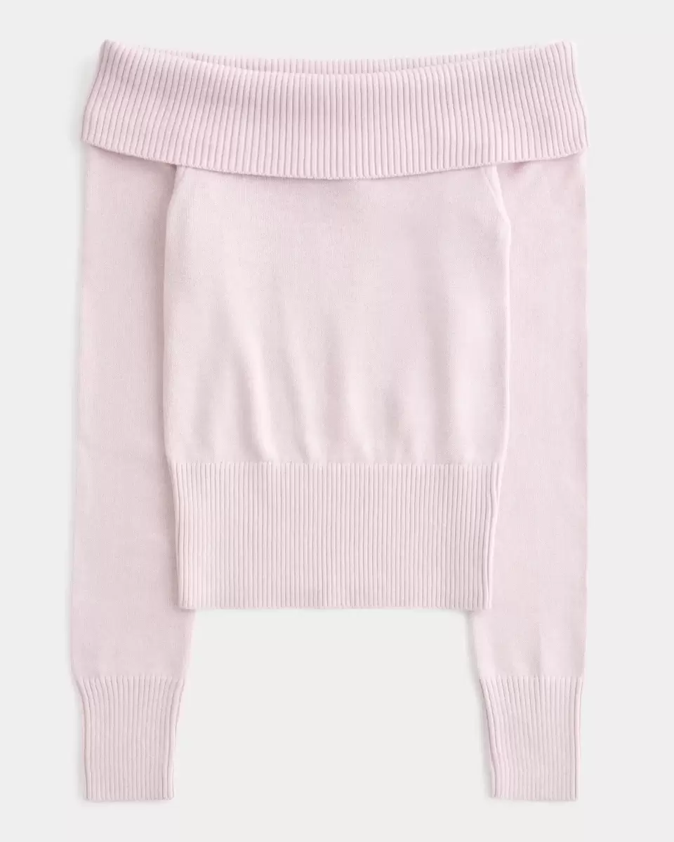 Un pull confortable et ultra doux en mélange de coton extensible. Encolure épaules dénudées, manches longues et finitions côtelées. Coupe ajustée.