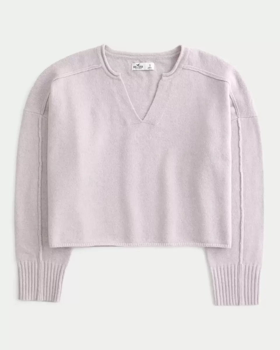 Un pull ultra doux confectionné dans notre tissu nuage confortable, avec une encolure crantée et des poignets côtelés. Coutures apparentes. Coupe carrée. Importé.