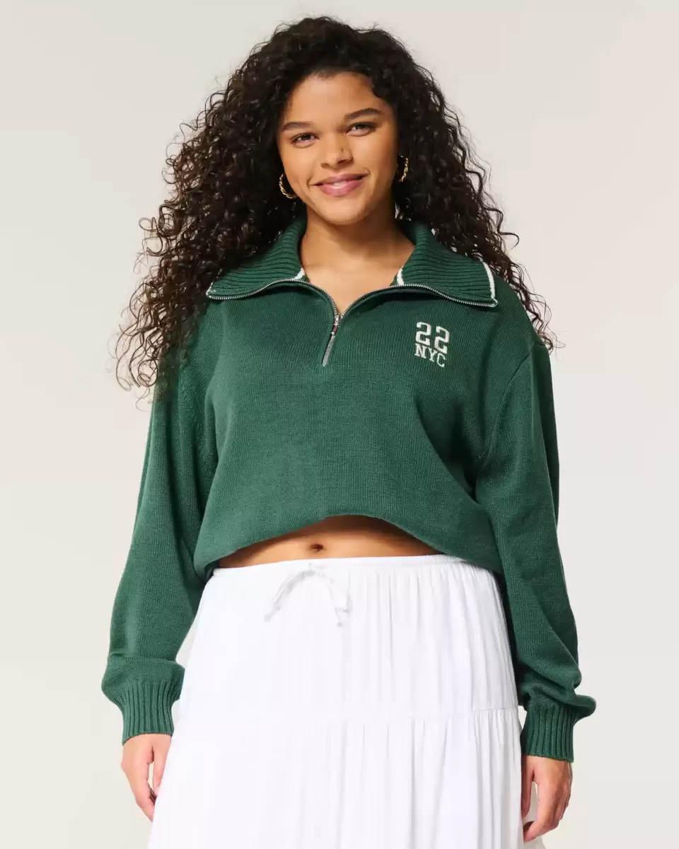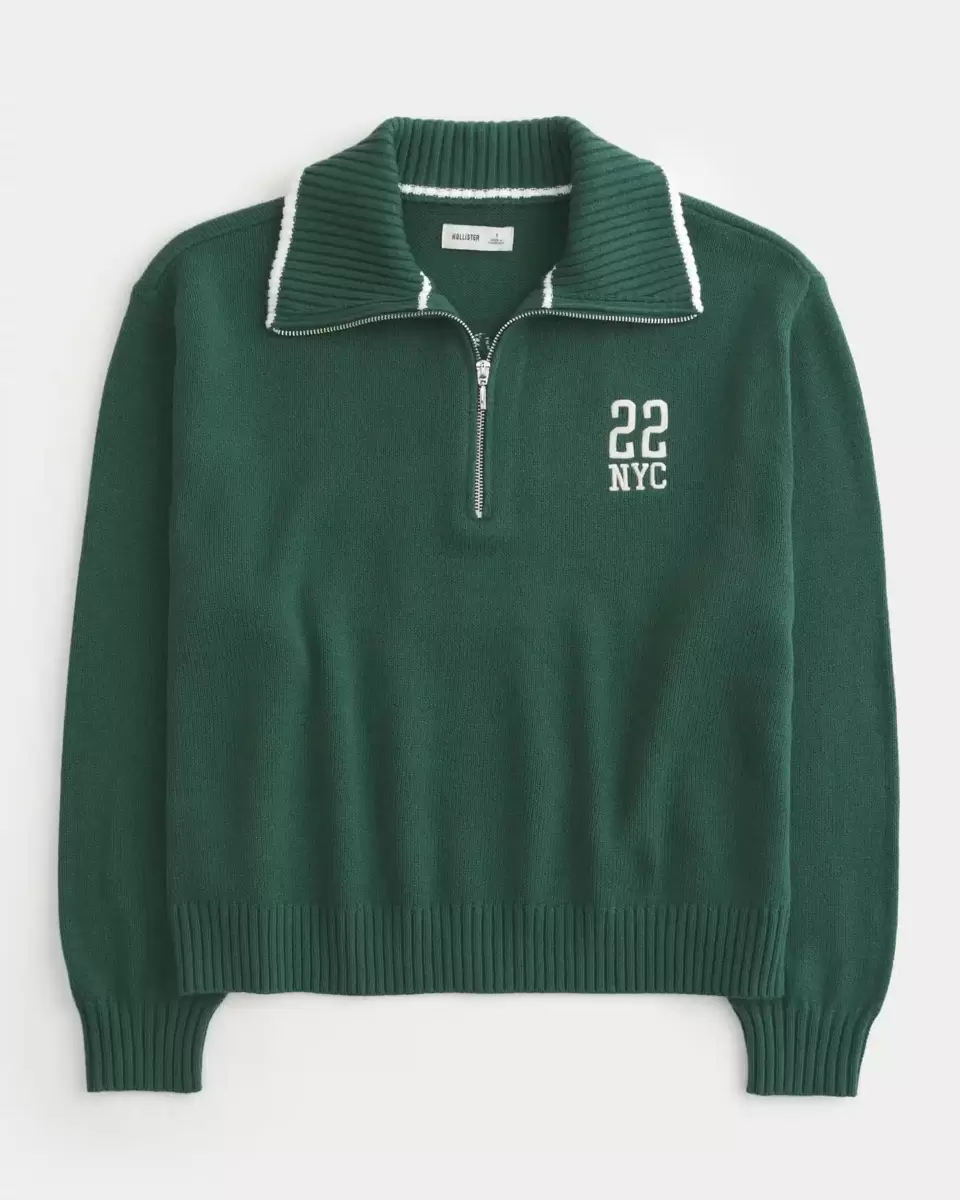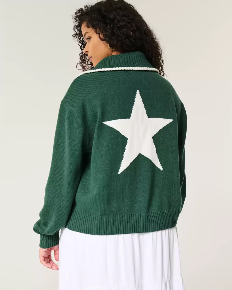 Un pull douillet et ultra doux orné d’une broderie NYC sur la poitrine gauche et d’un motif étoile intarsia dans le dos. Col rabattu avec demi-fermeture éclair, bords-côtes, manches longues et coupe oversize. Coupe oversize. Importé.