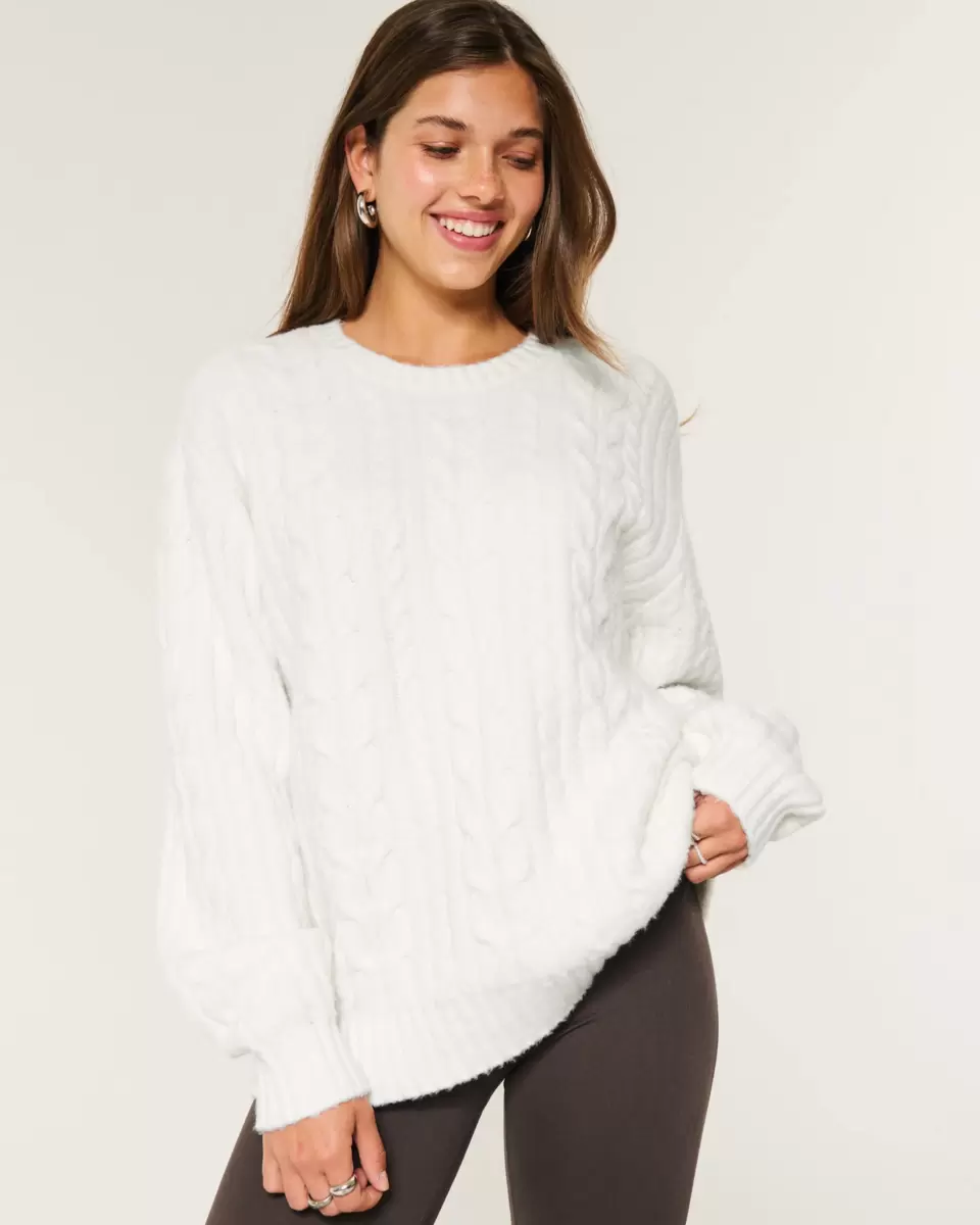 Un sweat-shirt incroyablement confortable en maille ultra douce Comfy Cloud, avec des motifs torsadés classiques. Encolure ras du cou, manches longues, bords-côtes. Coupe oversize.