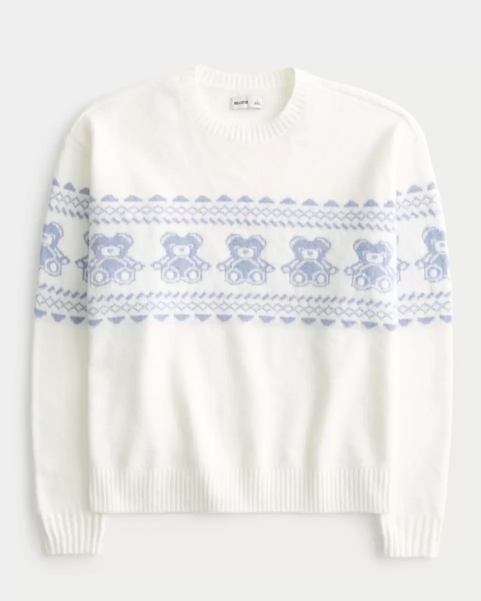 Un pull ultra doux en maille incroyablement confortable, orné d’adorables motifs ours en peluche intarsia. Encolure ras du cou, manches longues, bords côtelés. Coupe oversize. Importé.