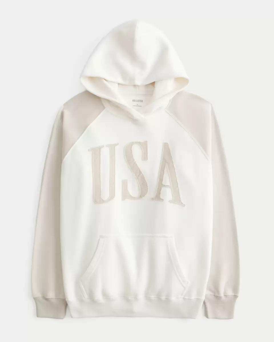 Confectionné en polaire ultra douce, ce sweat à capuche est orné d’un imprimé graphique américain appliqué. Capuche et poche avant. Coupe oversize. Importé.