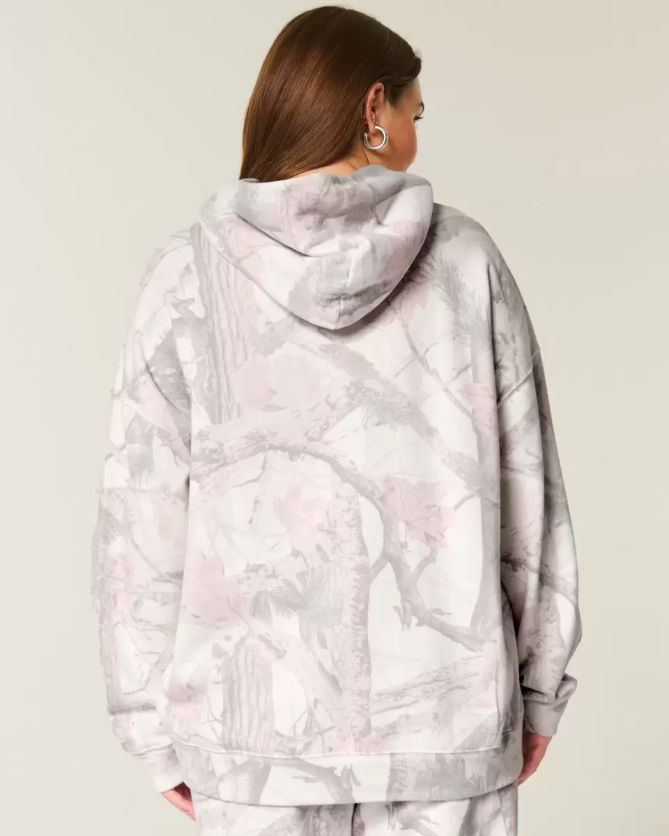 Un sweat à capuche mignon et confortable en polaire ultra douce. Capuche, poche kangourou sur le devant, manches longues, motif camouflage intégral. Coupe oversize. Importé.