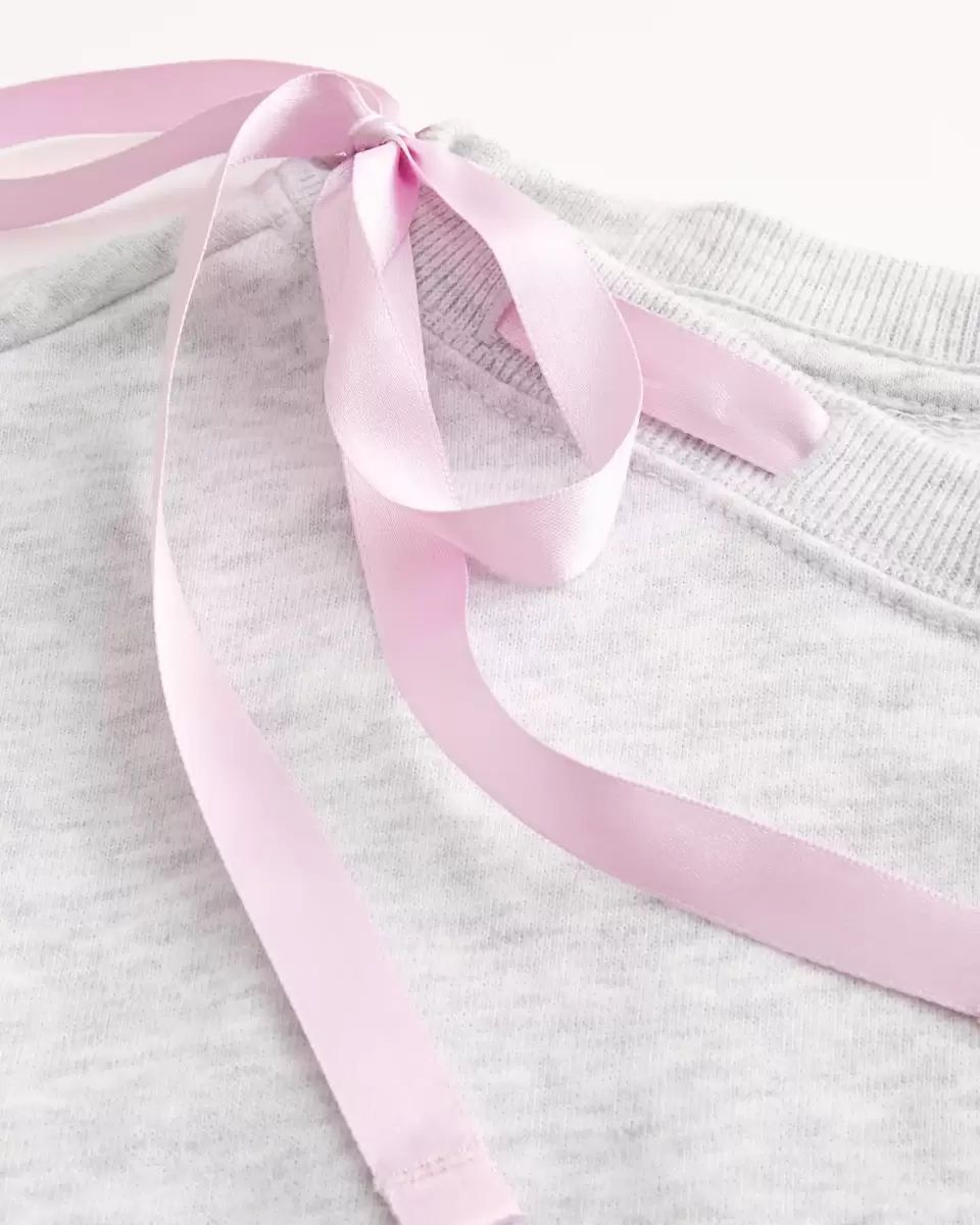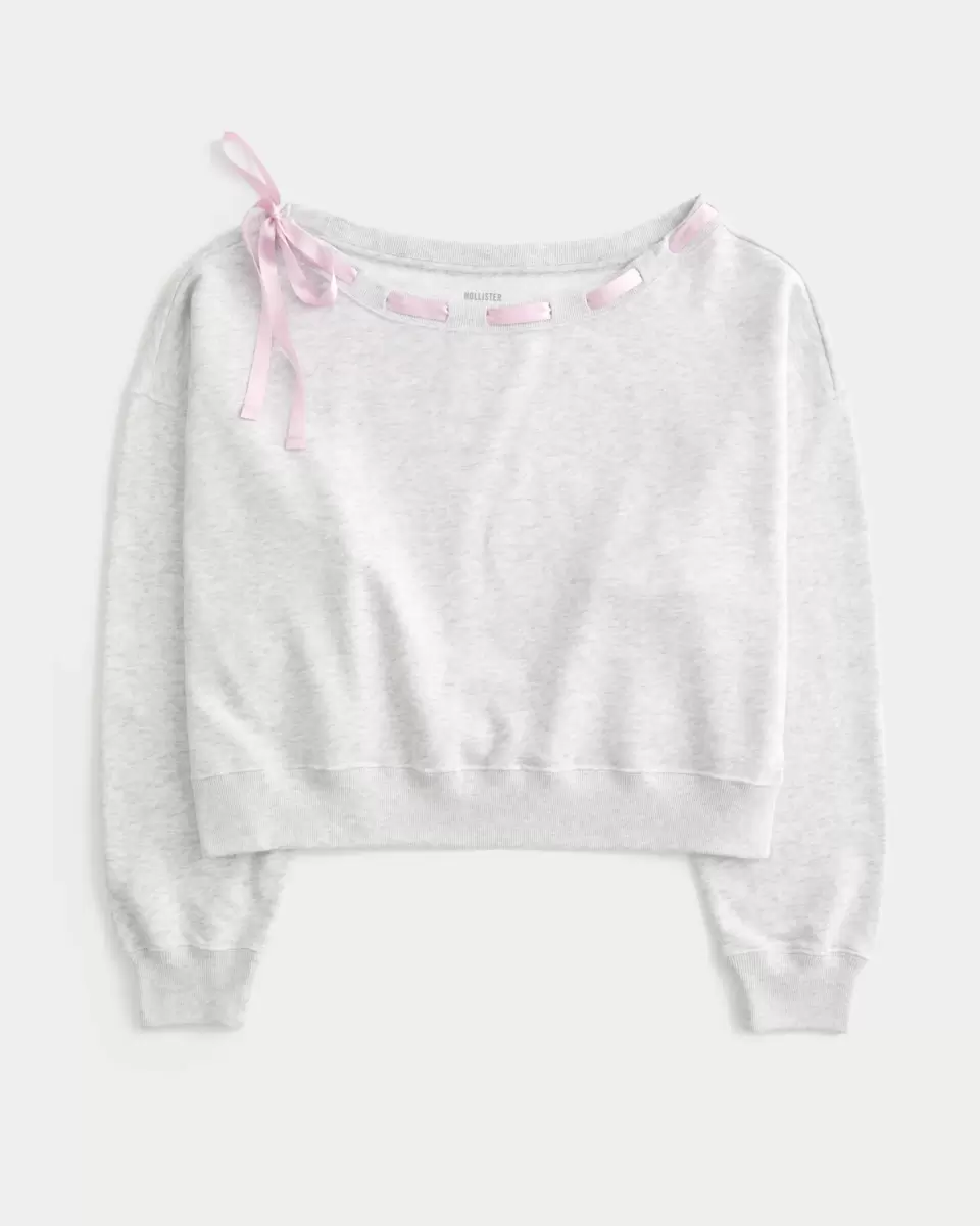Ce sweat-shirt ultra doux présente une encolure dégagée avec un joli lien. Manches longues. Importé.