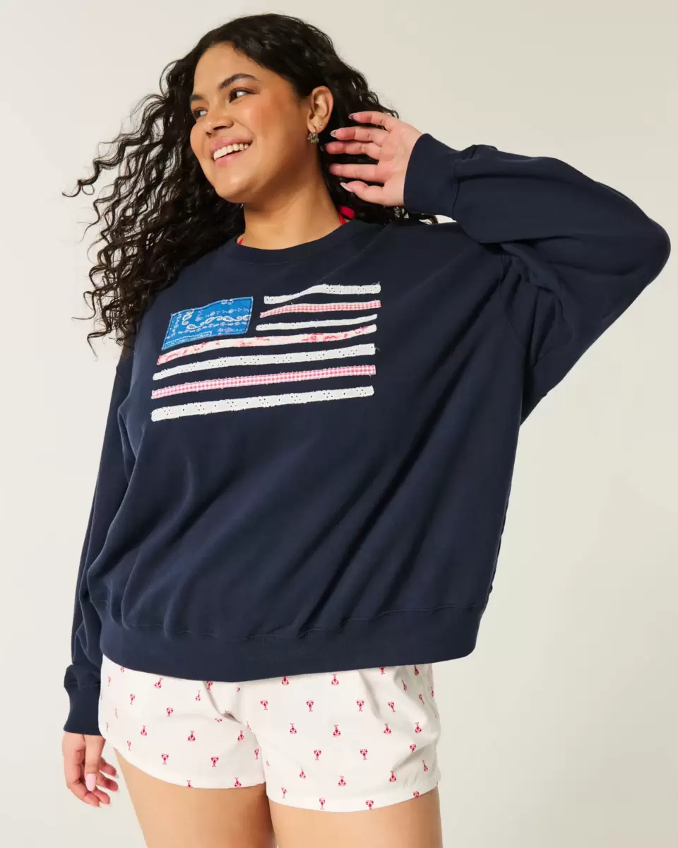 Sweat-shirt en polaire ultra doux orné d’un drapeau américain appliqué. Encolure ras du cou, manches longues. Coupe facile. Importé.