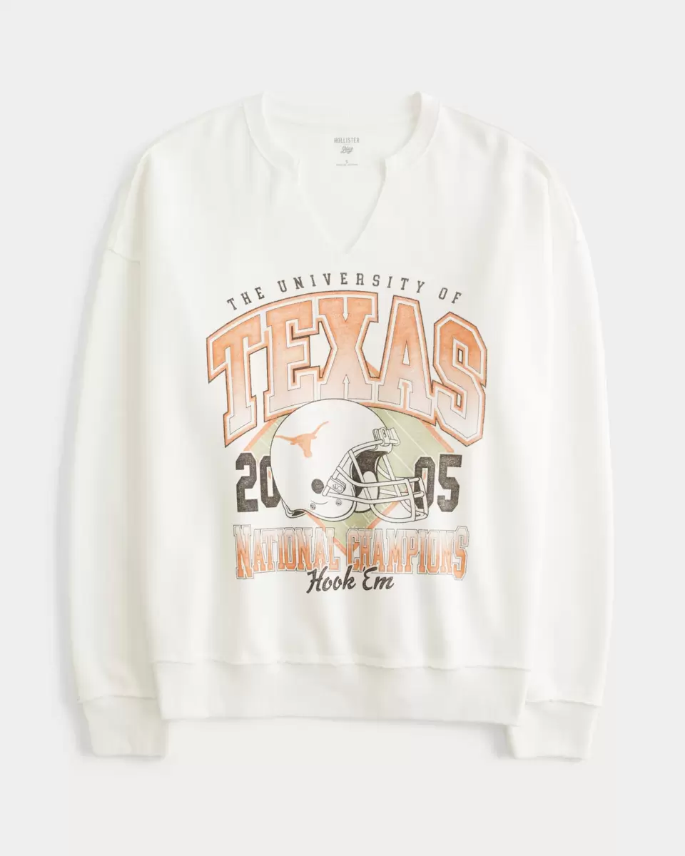Sweat-shirt en polaire ultra doux avec imprimé graphique officiel du football américain de l’Université du Texas à Austin, sous licence officielle, encolure crantée et manches longues. Coupe oversize. Importé.
