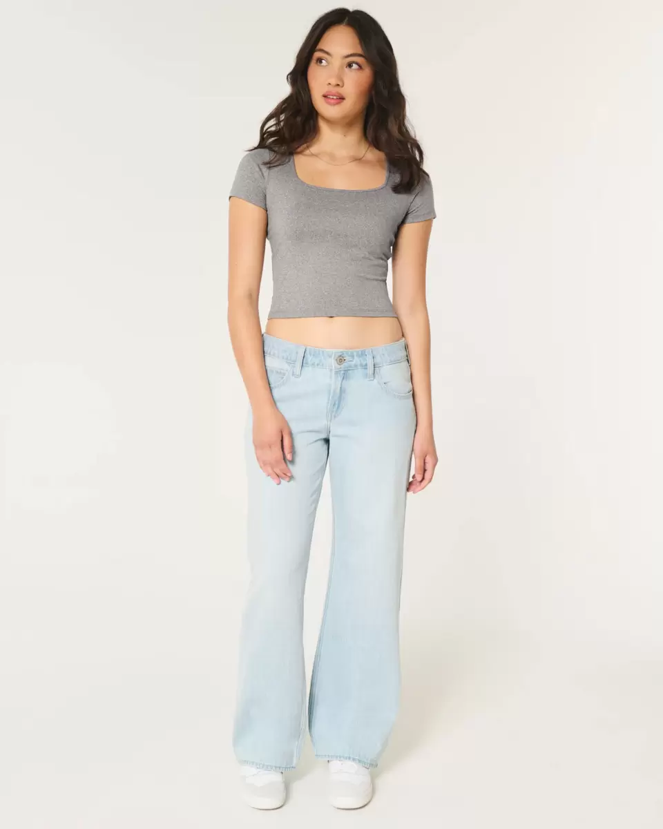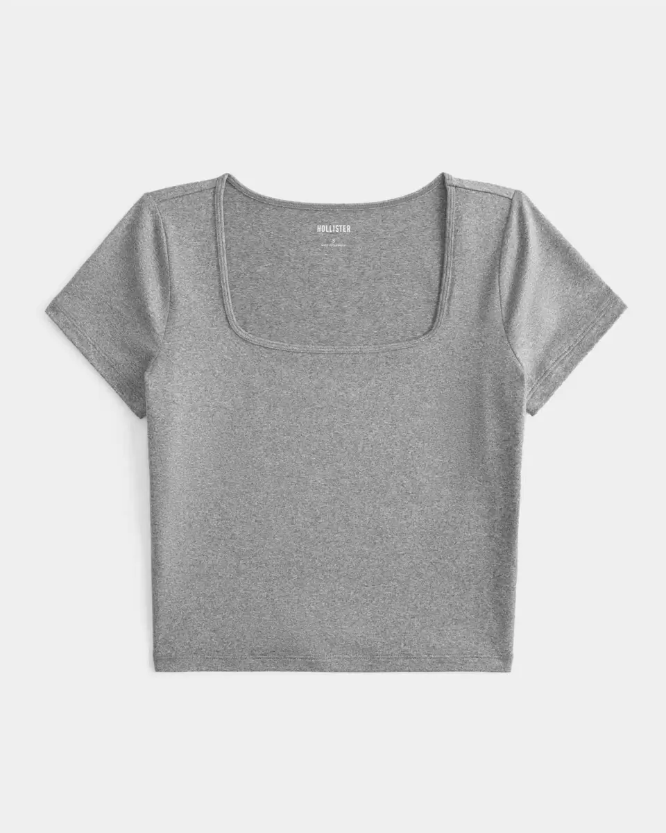 T-shirt bébé à col carré en tissu extensible doux et sans coutures