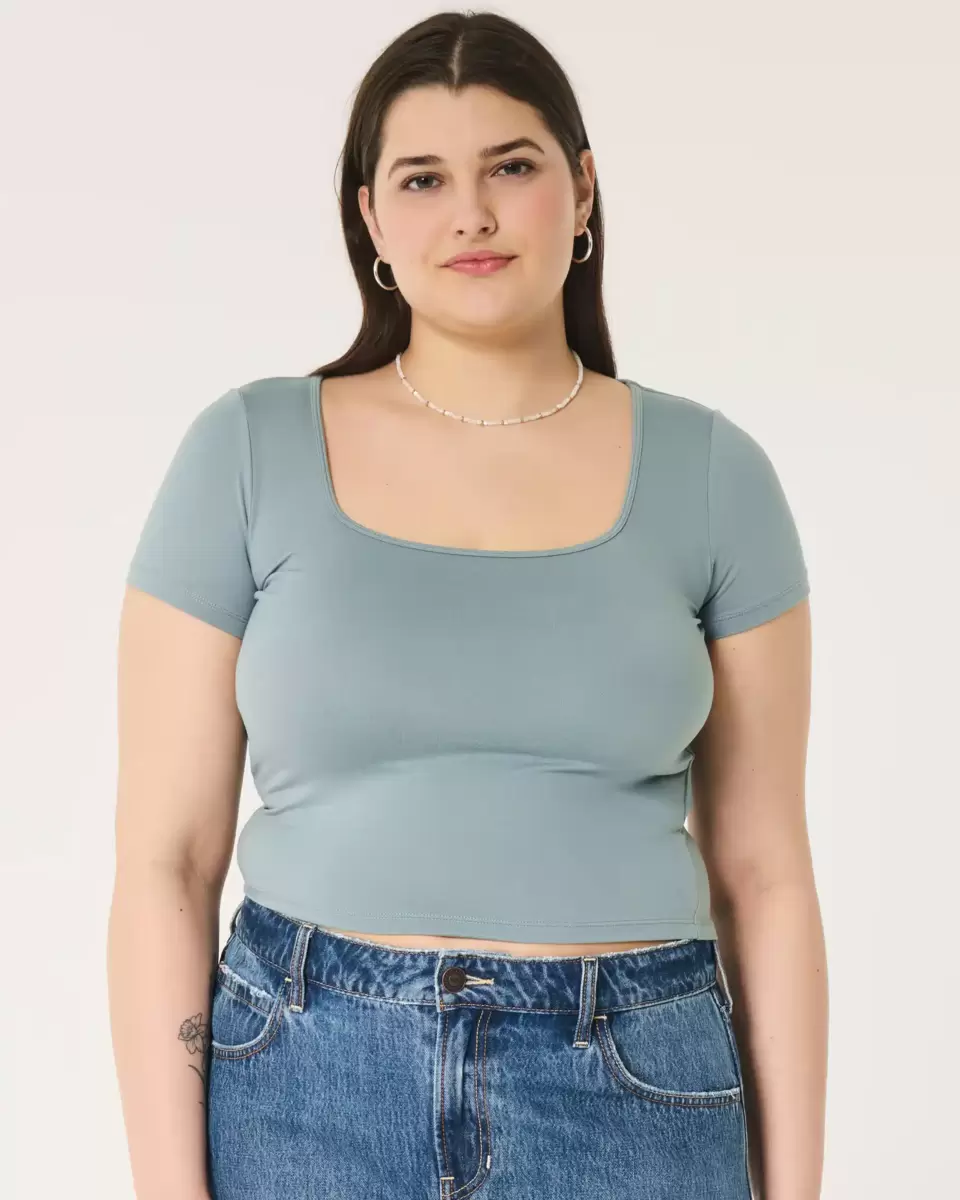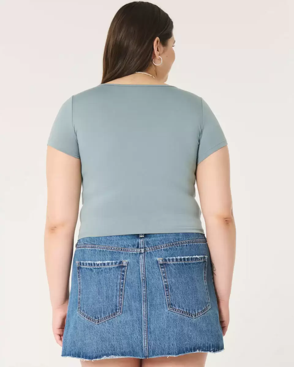 T-shirt bébé confortable en tissu extensible doux, sans coutures. Encolure carrée, manches courtes. Coupe ajustée. Importé.
