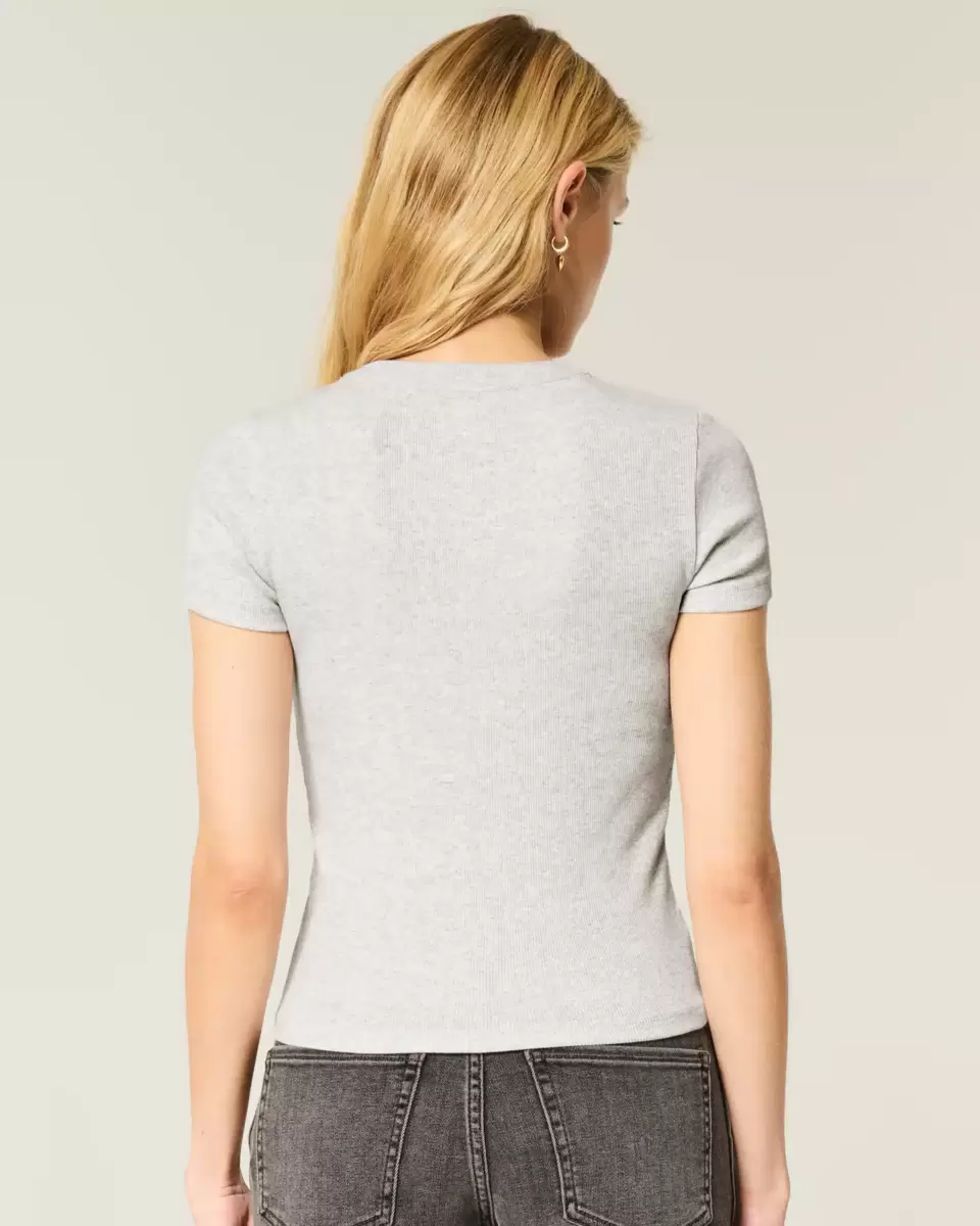 Un joli t-shirt bébé ultra doux, légèrement raccourci. Encolure ras du cou, manches courtes. Coupe ajustée. Importé.