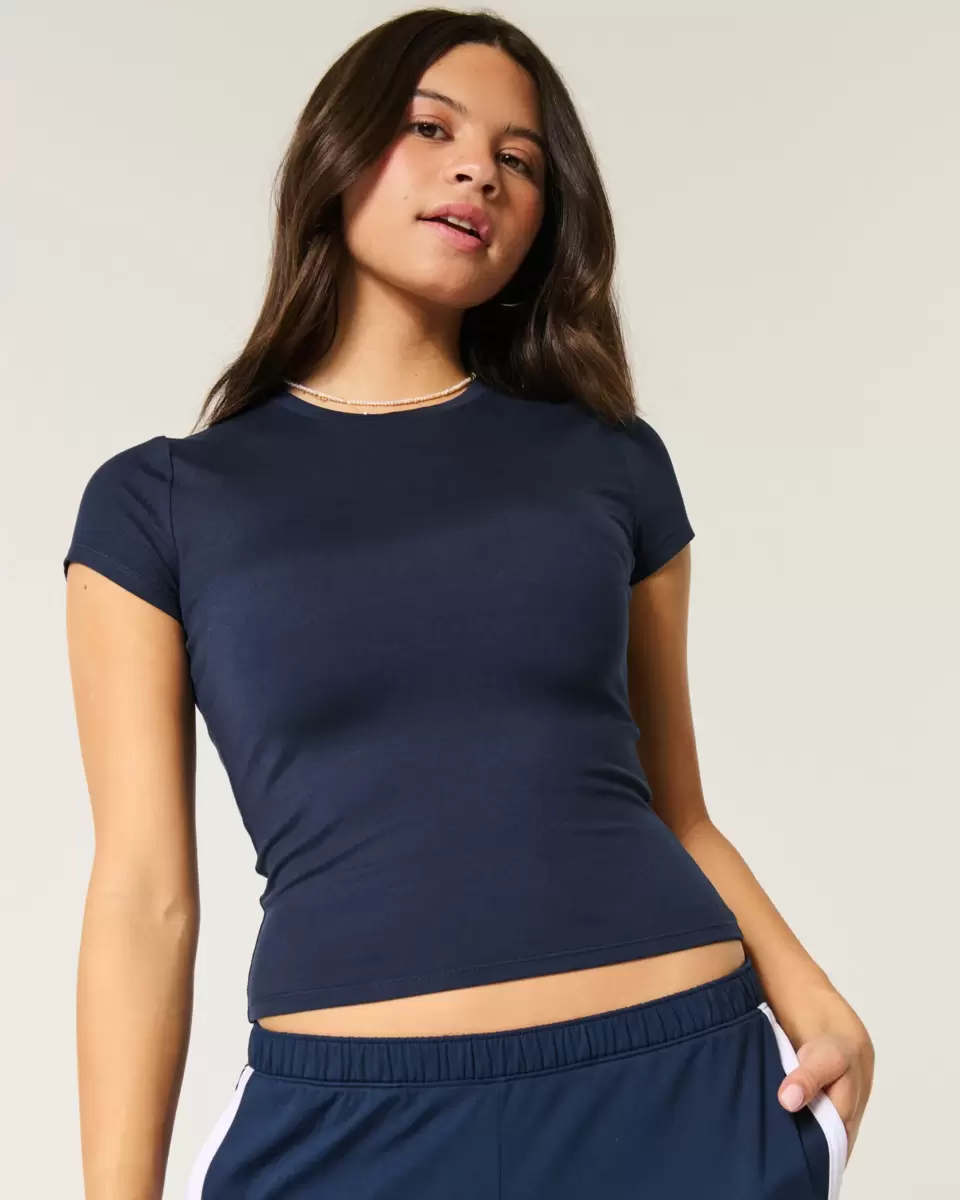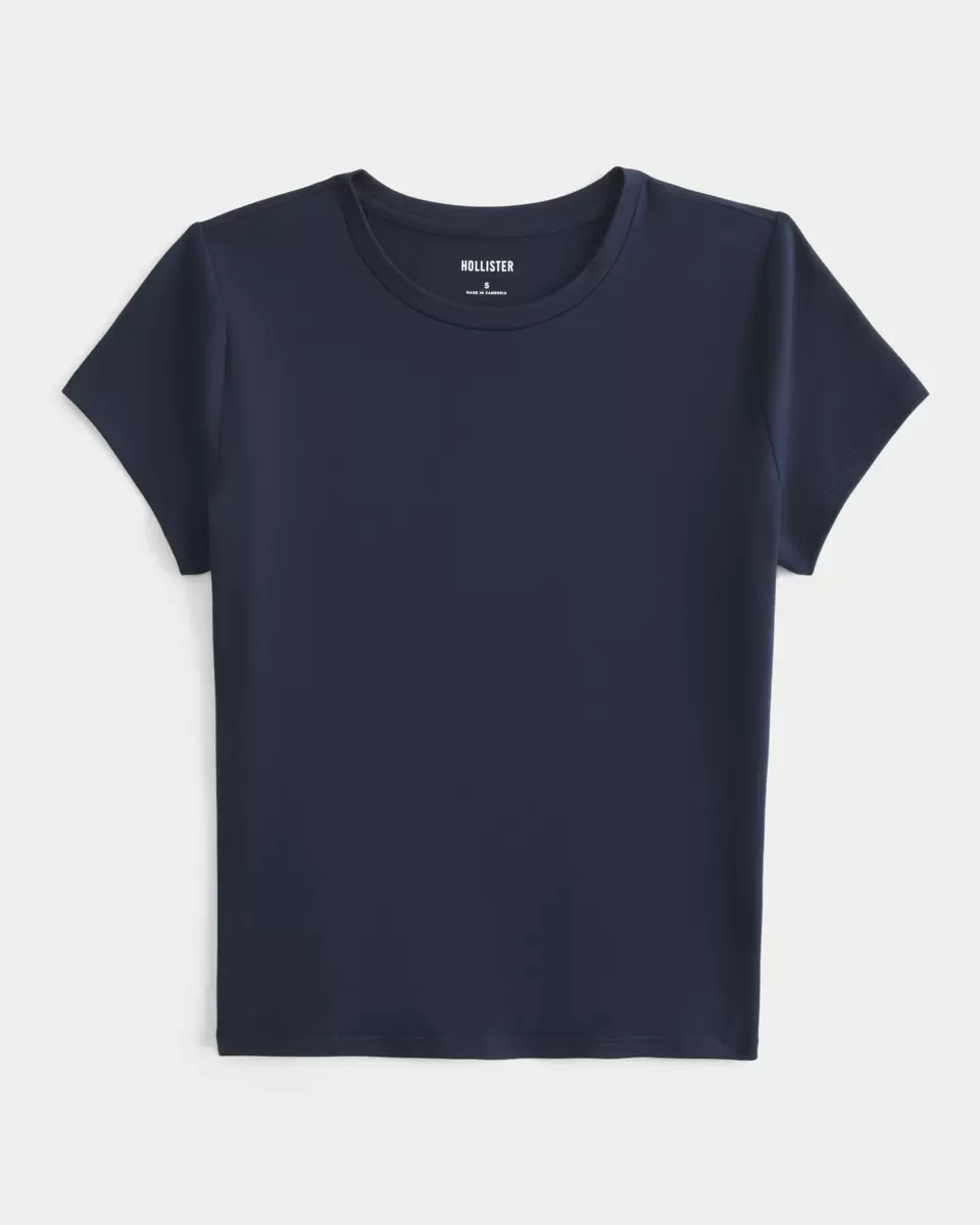Ce t-shirt bébé, mignon et confortable, est confectionné dans un tissu extensible doux et sans coutures. Coupe longue, encolure ras du cou et manches courtes.