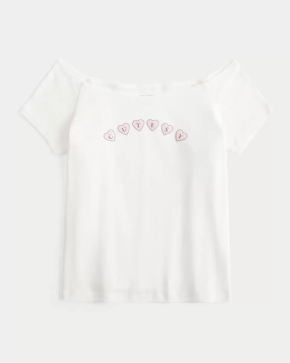 Confortable et ultra doux, ce t-shirt présente un imprimé cœur mignon et une encolure dégagée. Manches courtes. Coupe ajustée. Importé.