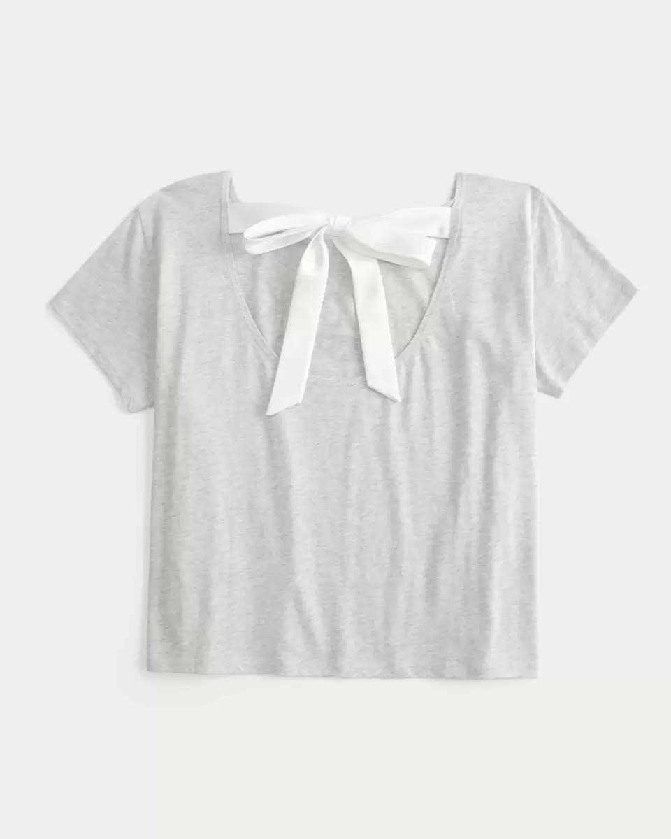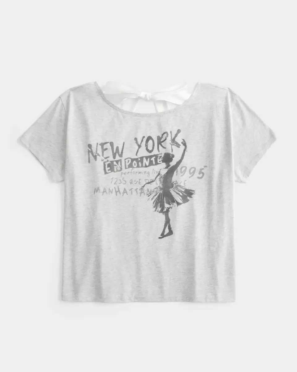 Mignon et ultra doux, ce t-shirt présente un imprimé New York et un ruban noué au dos. Manches courtes. Coupe facile. Importé.