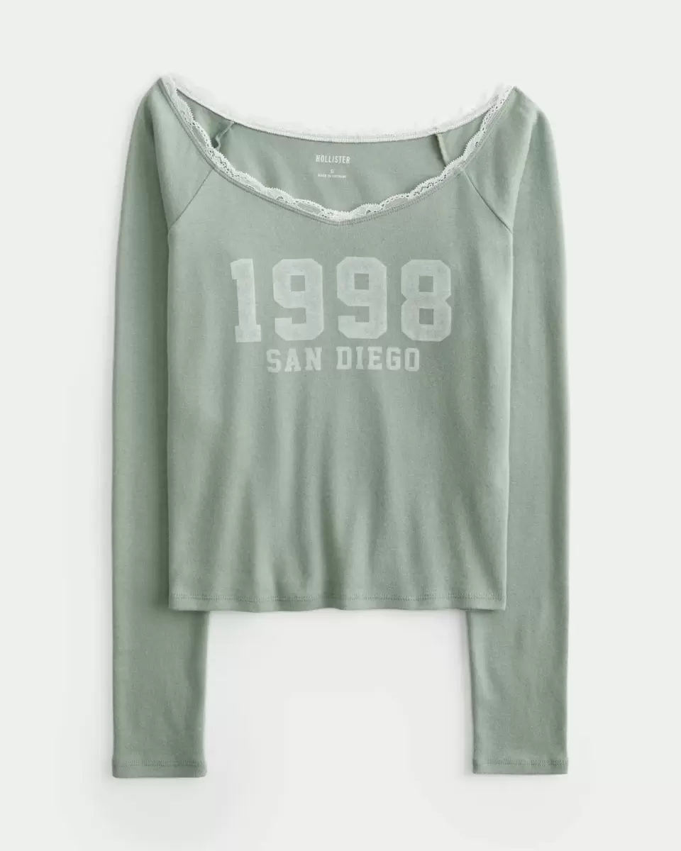 T-shirt graphique San Diego à épaules dénudées et bordure en dentelle