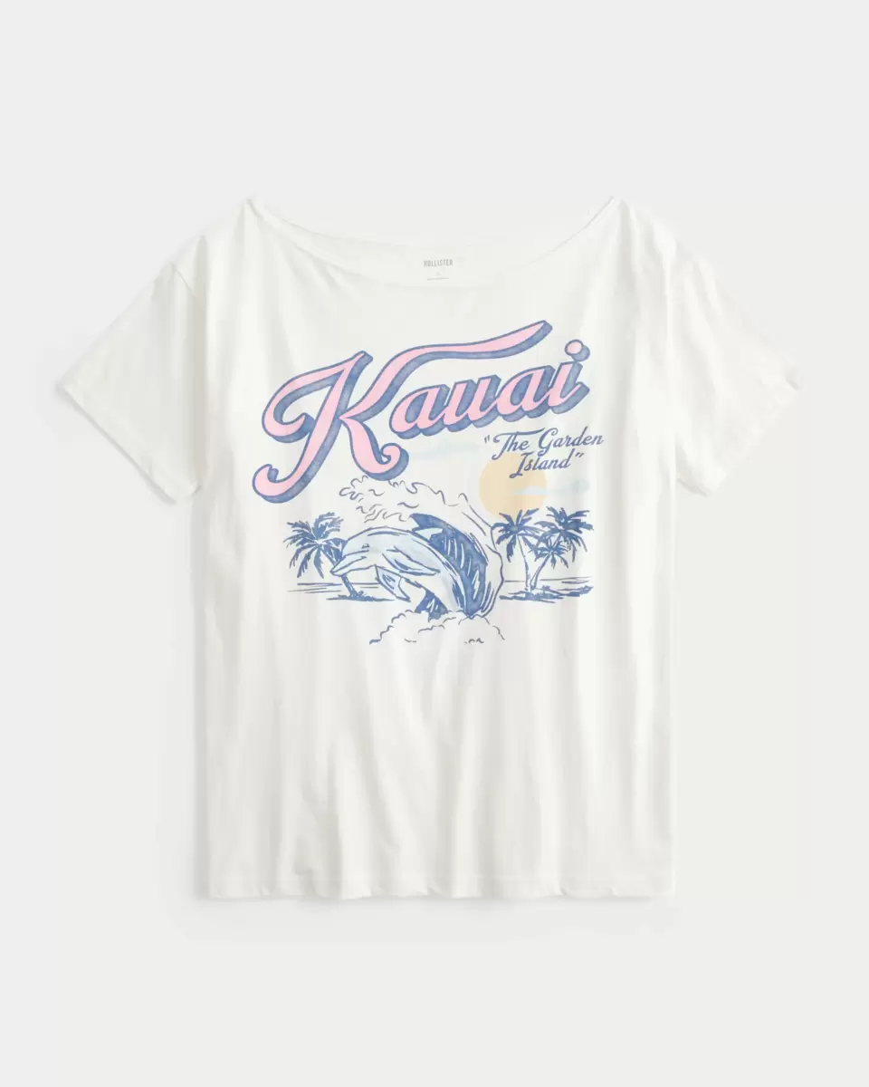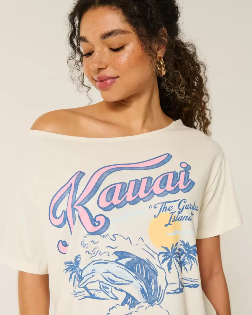 T-shirt en coton ultra doux avec imprimé Kauai et encolure dégagée. Manches courtes, longueur plus longue. Coupe oversize. Importé.