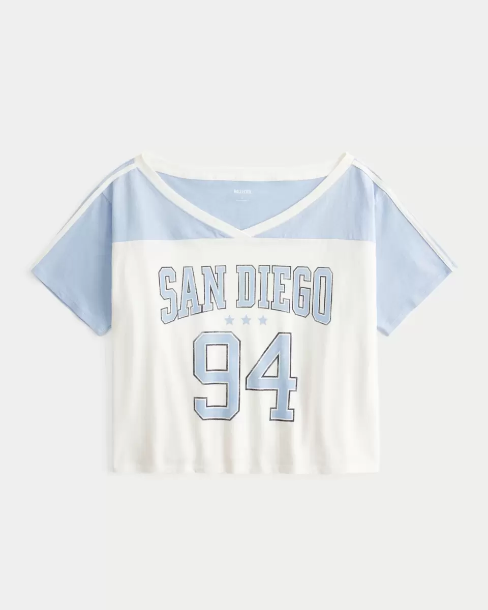 T-shirt ultra doux avec imprimé San Diego style universitaire et encolure dégagée. Manches courtes. Coupe oversize. Importé.