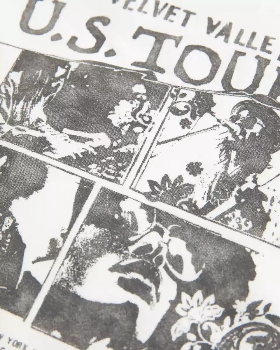 Super doux et confortable, ce t-shirt tendance arbore un imprimé Velvet Valley US Tour d’inspiration vintage et une encolure torsadée à épaules dénudées. Coupe ajustée. Importé.