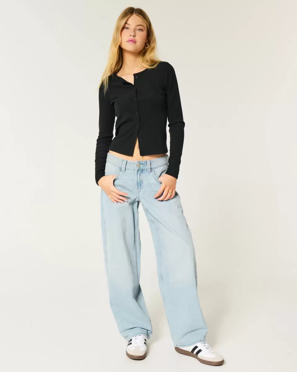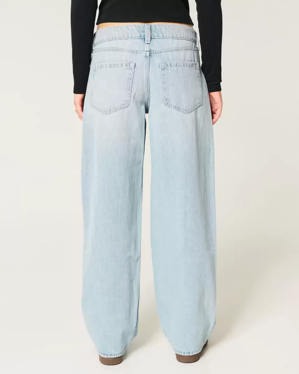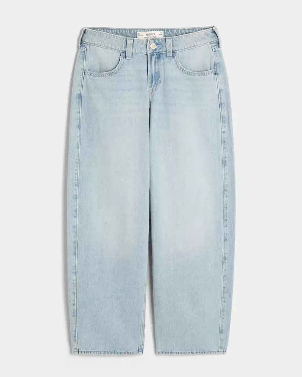 Jean en denim ultra-confortable au délavage moyen, avec une taille basse et une jambe ample se rétrécissant vers une ouverture plus étroite. Décoloration et effet moustaches. Importé.