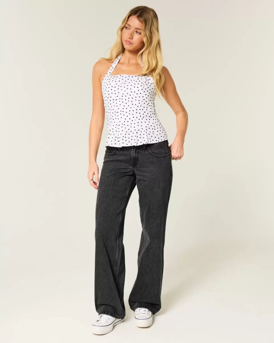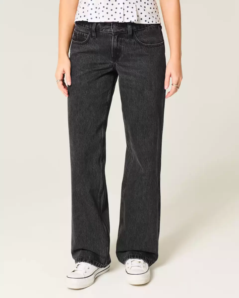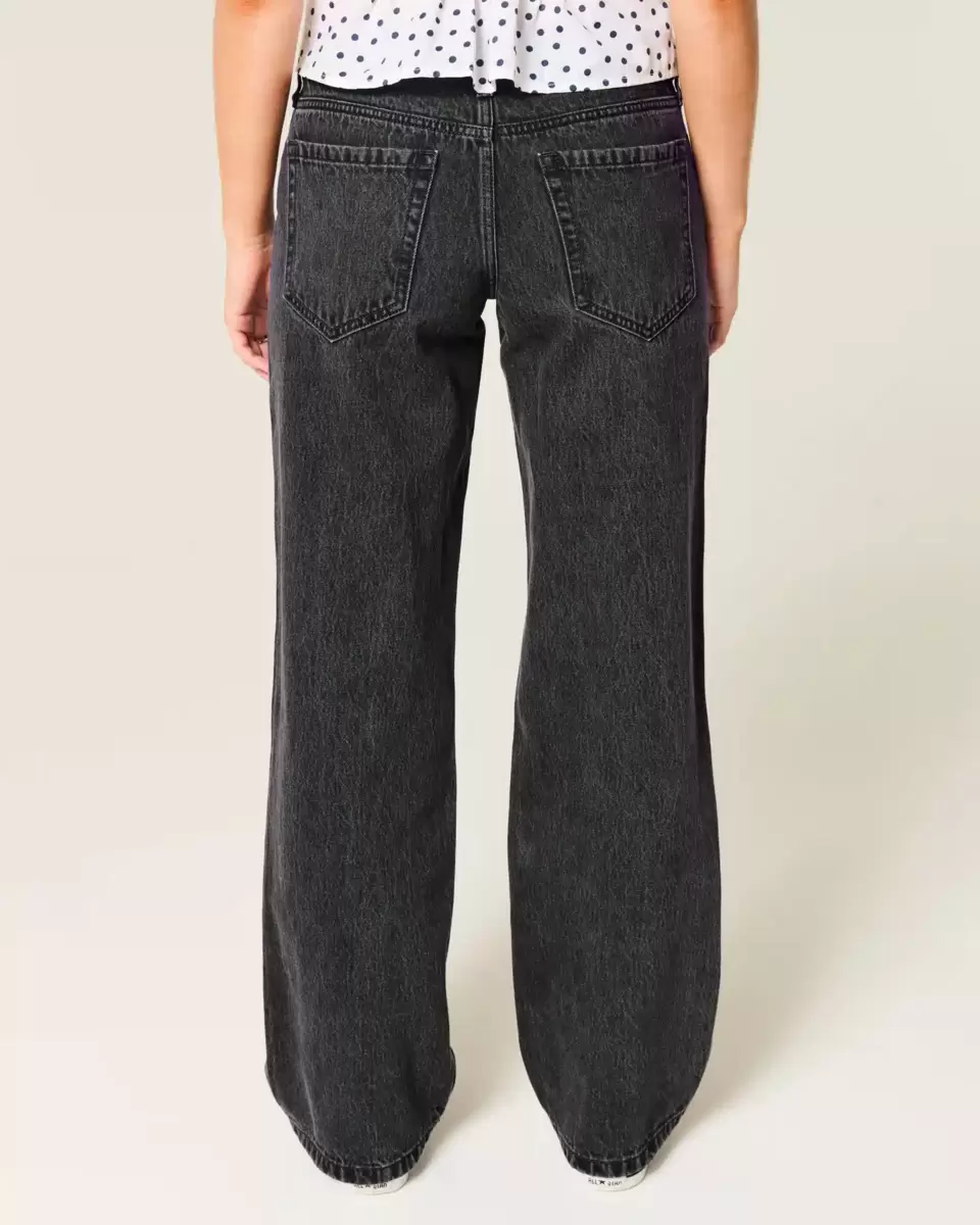 Jean confortable en denim noir délavé, avec une jambe ample et une taille basse flatteuse. Importé.