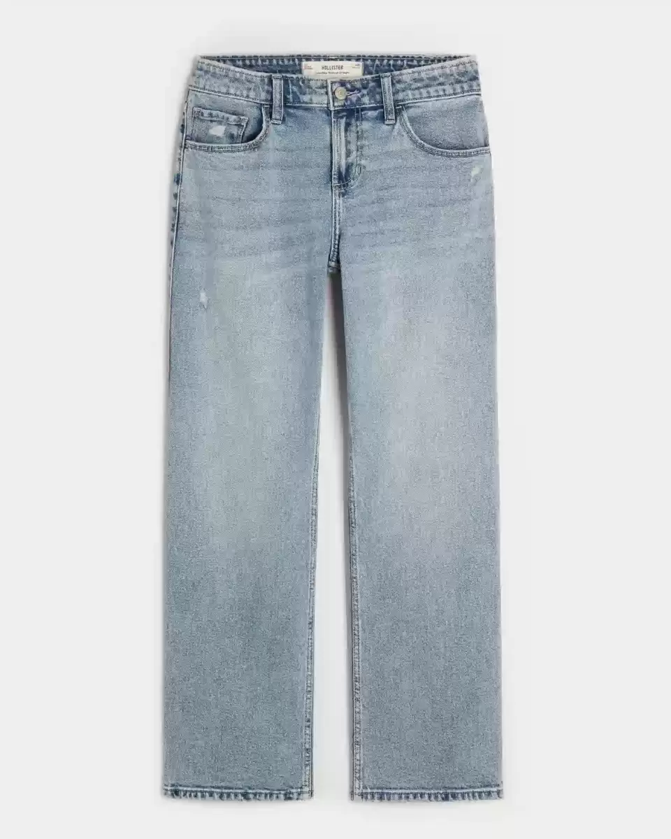 Jean mignon et confortable au délavage moyen, avec une taille basse flatteuse et une jambe droite décontractée. Décoloration, moustaches, détails usés, denim stretch vintage. Importé.