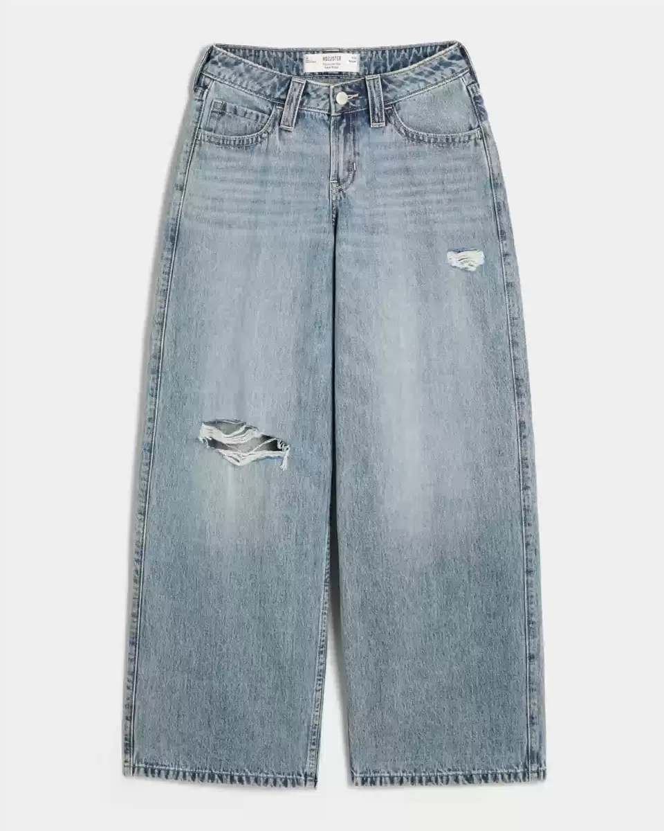 Jean super baggy taille basse déchiré et courbé, délavage moyen