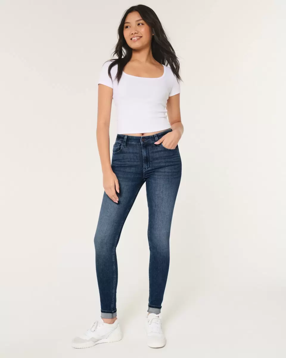 Conçu dans notre coupe slim signature, ce jean super skinny à délavage moyen présente des effets de décoloration et de moustaches. Taille haute, ourlets à revers et stretch. Importé.
