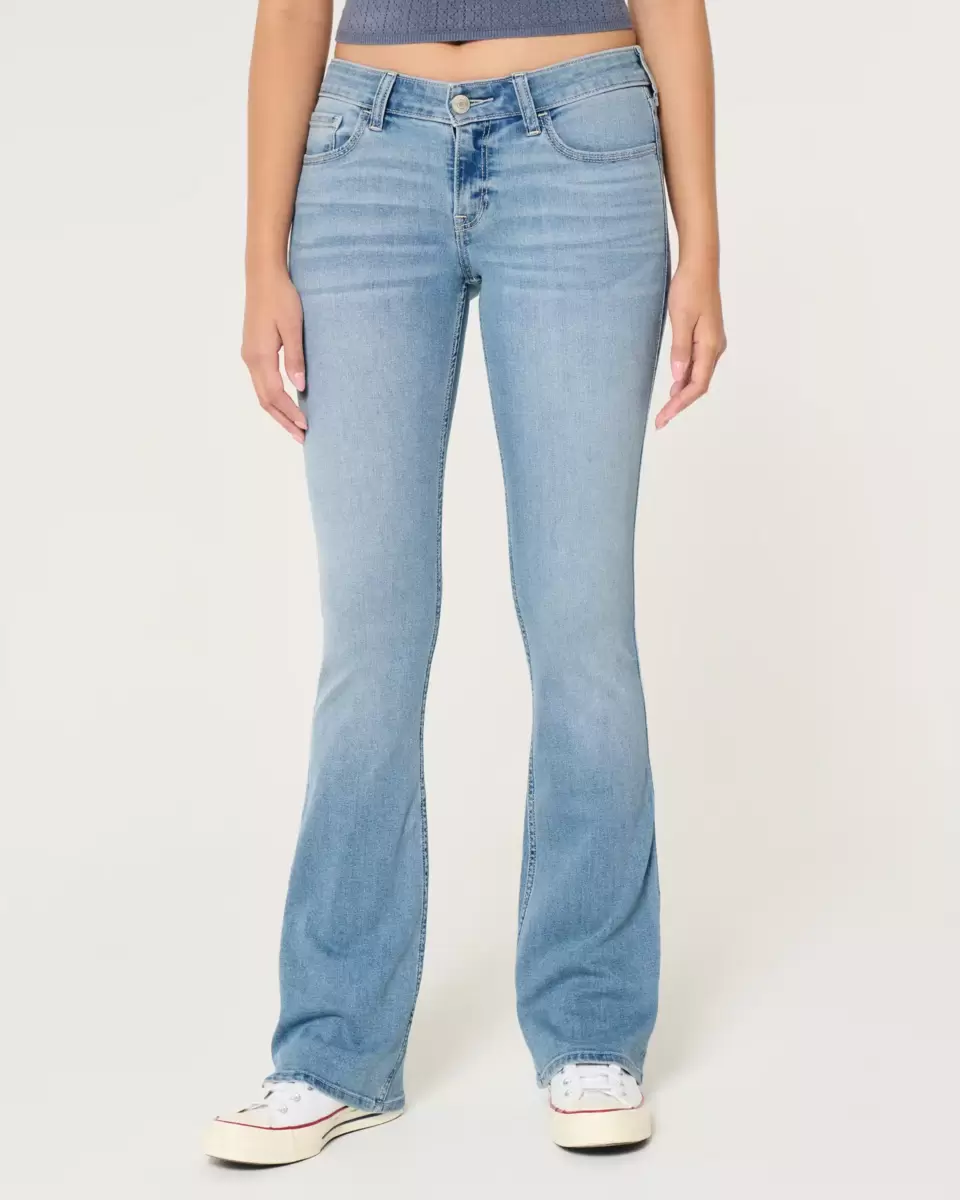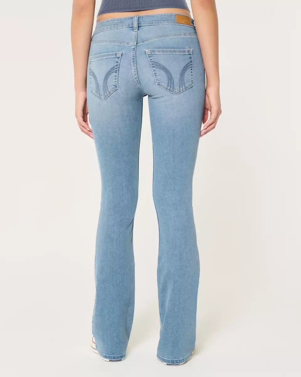 Conçu avec une taille basse, une jambe slim et un ourlet bottier. Denim délavé clair avec décoloration, moustaches et stretch. Importé.