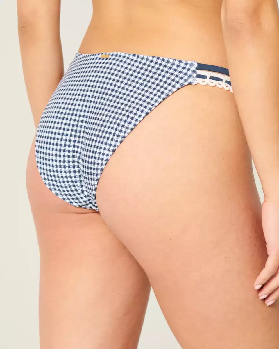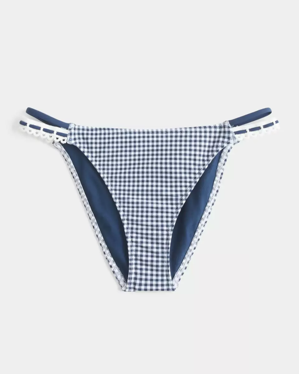Un joli bas de bikini avec des bretelles doubles et une bordure crochetée. Couvrance flatteuse. Importé.