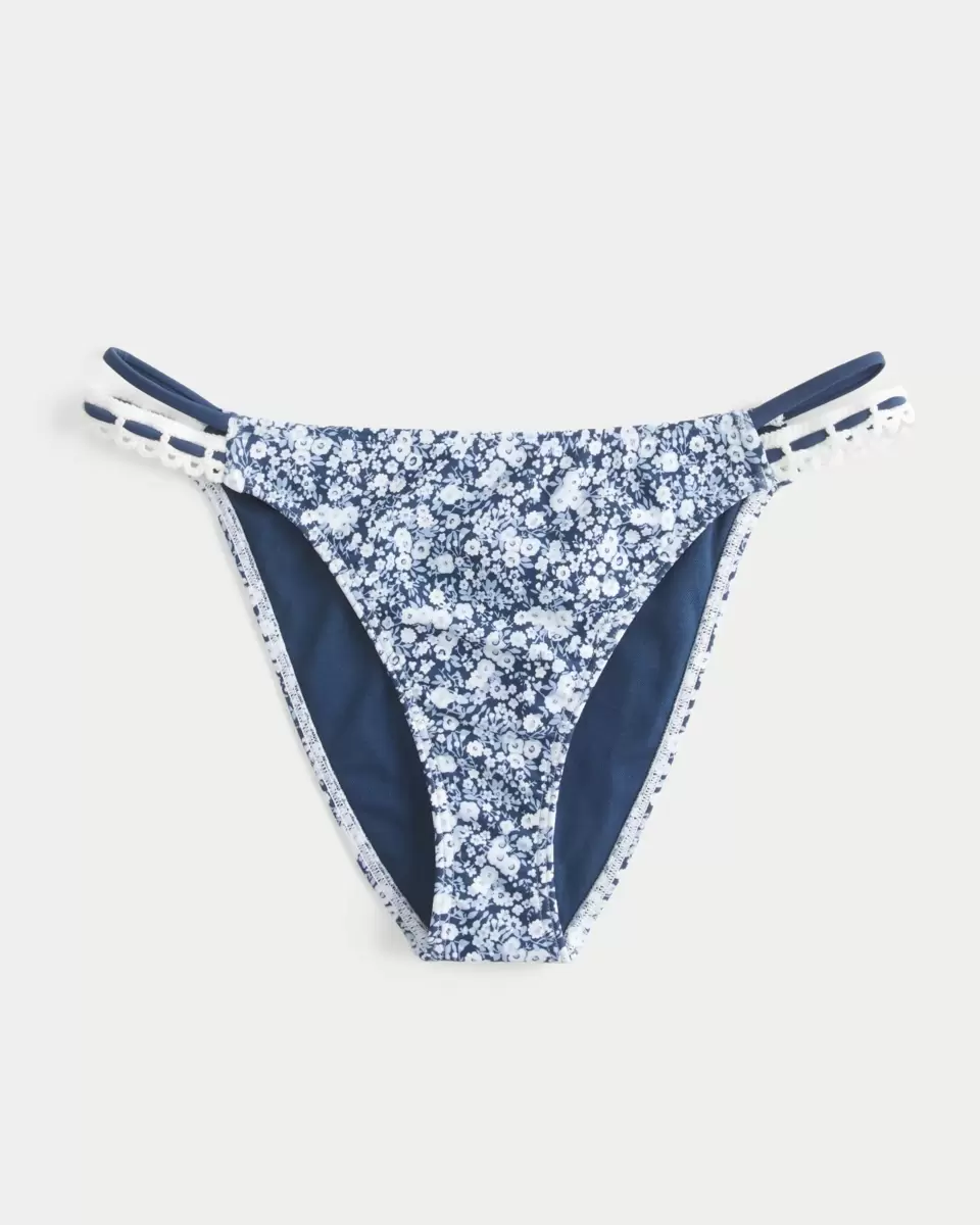 Un joli bas de bikini avec des bretelles doubles et une bordure crochetée. Couvrance flatteuse. Importé.