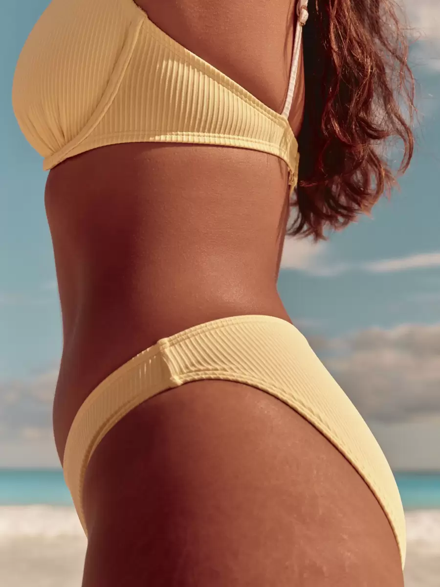 Ce joli bas de bikini est confectionné dans un tissu côtelé doux. Coupe classique. Importé.