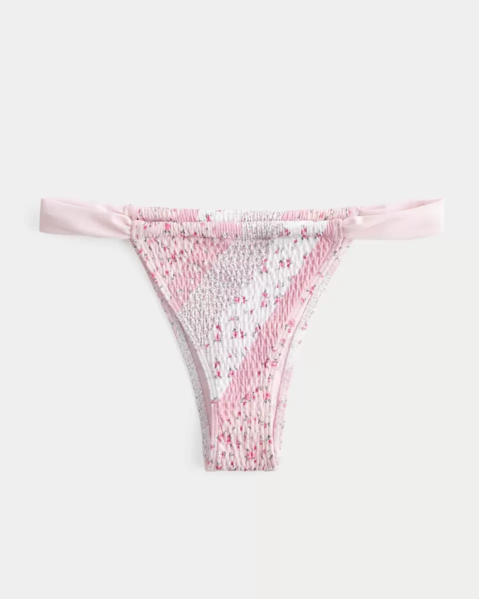 Ce bas de bikini mignon et confortable est confectionné dans un tissu de bain doux à smocks. Bretelles latérales, coupe échancrée et couverture ultra-cosy. Importé.