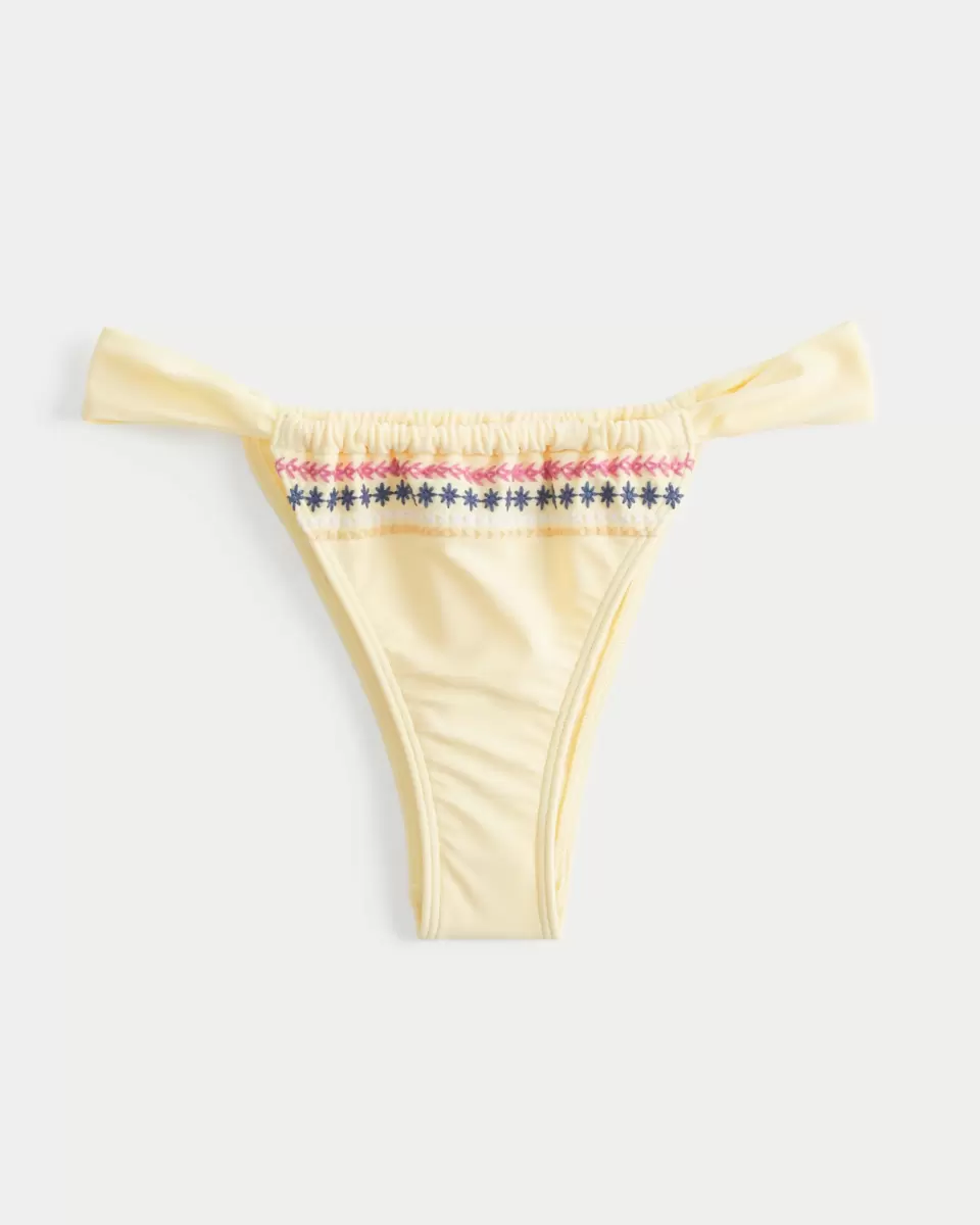 Ce joli bas de bikini est conçu avec des bretelles fines sur les côtés et notre coupe la plus coquine. Détails de coutures brodées. Importé.