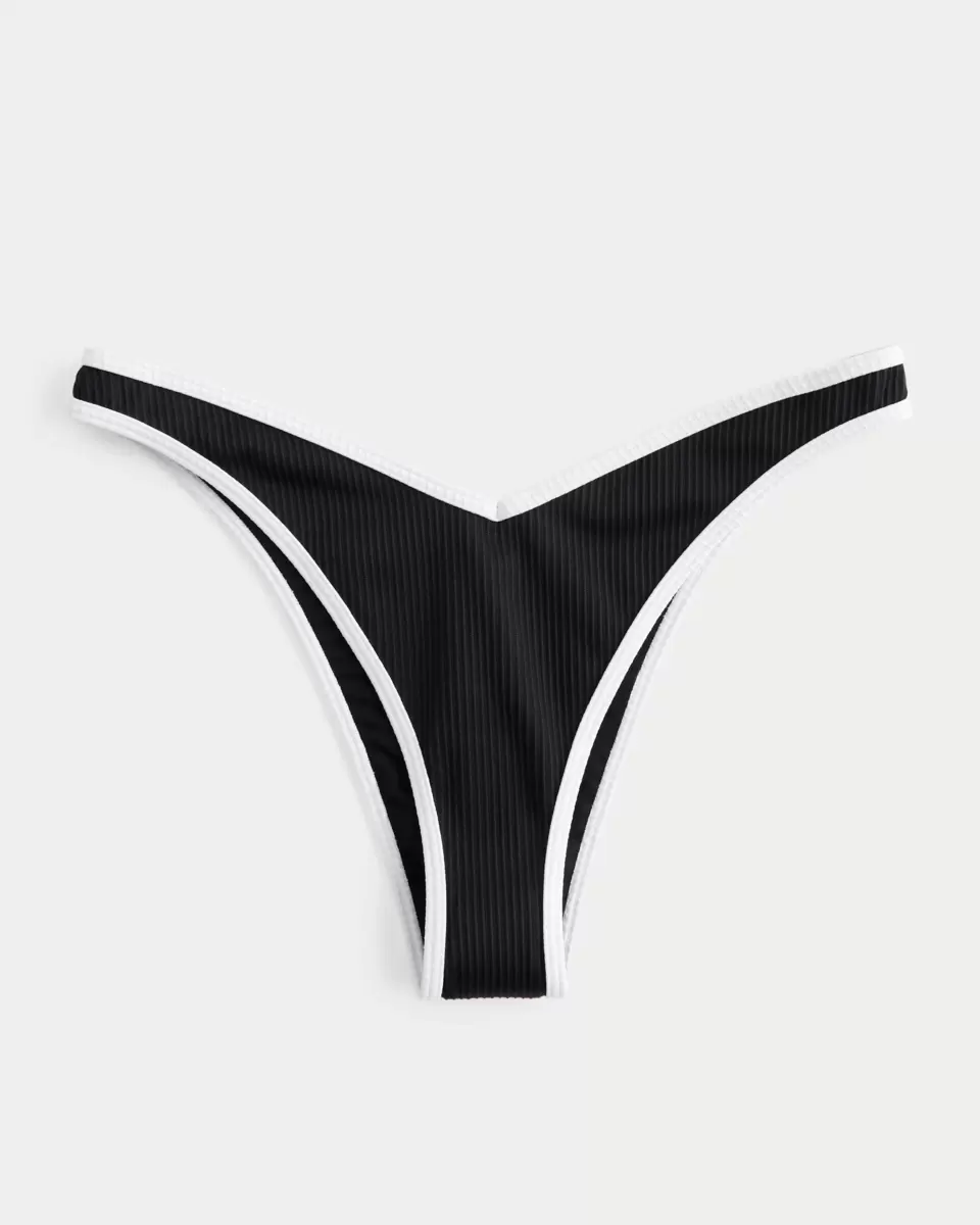 Ce bas de bikini super mignon présente une coupe échancrée, une taille en V et notre coupe la plus échancrée. Tissu de bain côtelé doux. Importé.