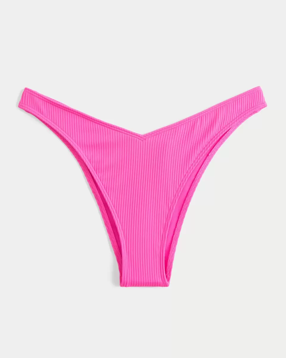 Ce bas de bikini super mignon présente une coupe échancrée, une taille en V et notre coupe la plus échancrée. Tissu de bain côtelé doux. Importé.