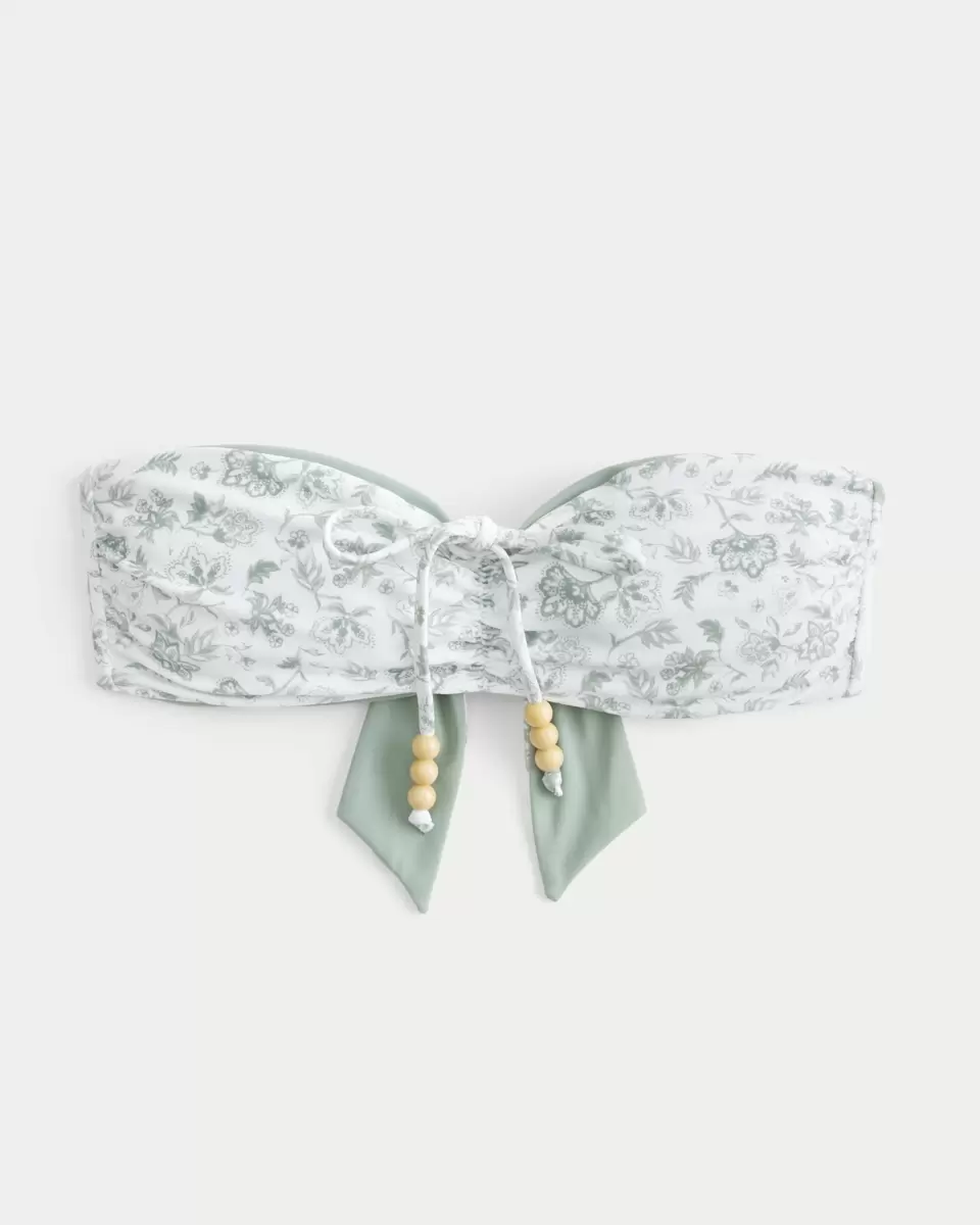 Un joli haut de bikini réversible avec une coupe bandeau. Lien central orné de perles. Importé.
